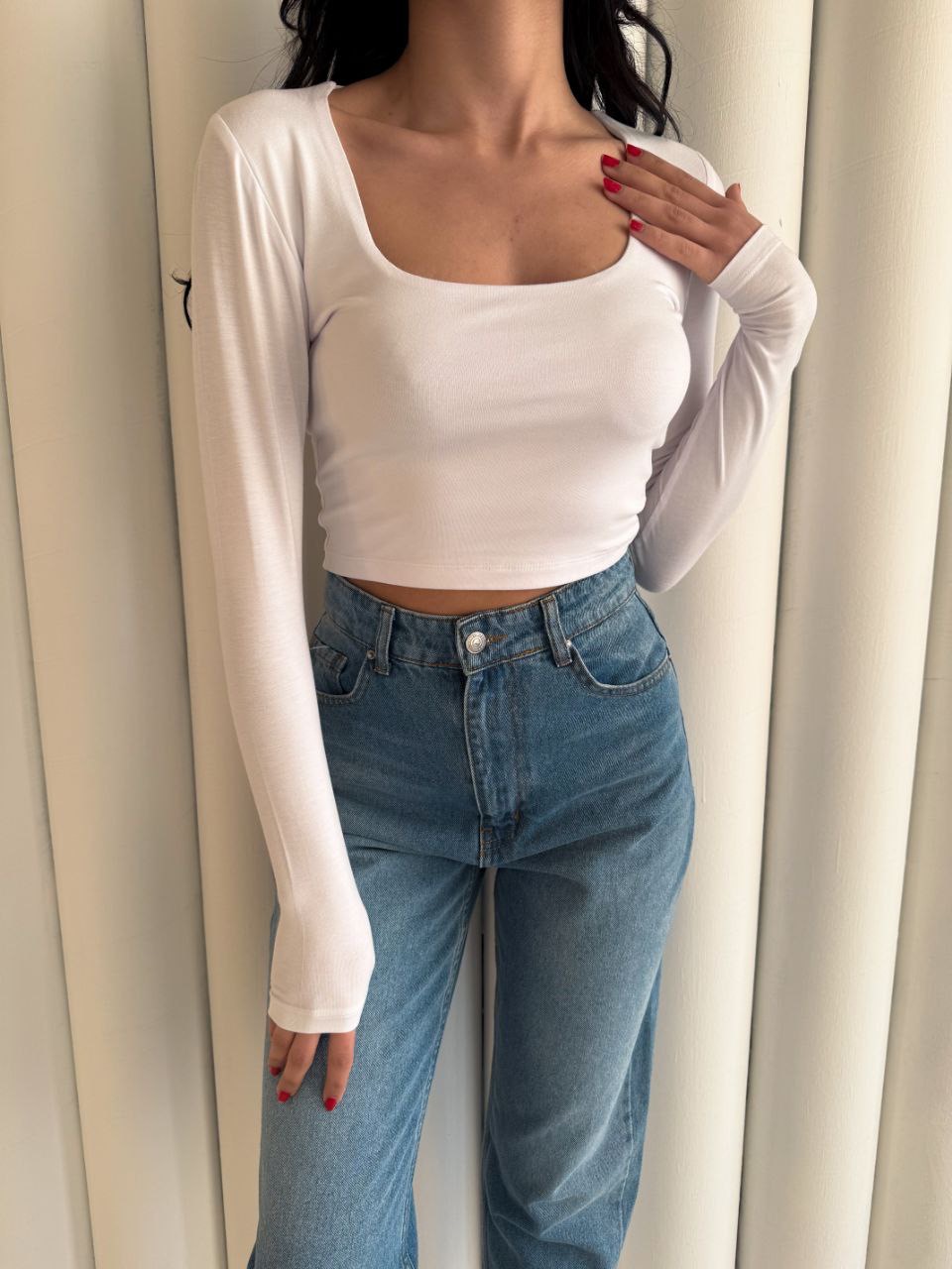 Zarif, sade ve zamansız bir görünüm için Kadın Kare Yaka Uzun Kol Bluz – Beyaz en doğru tercih.