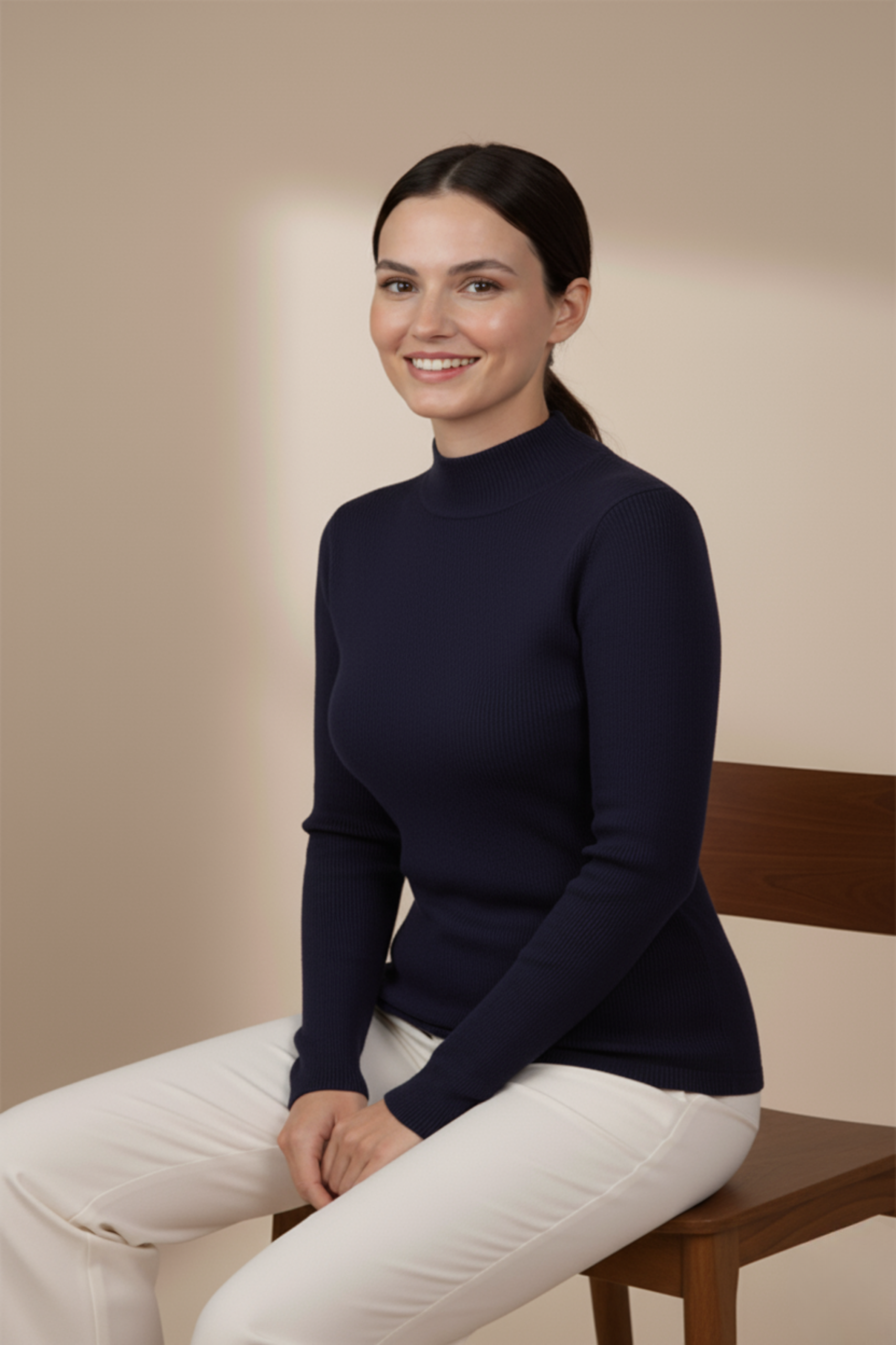 Kadın Lacivert Balıkçı Yaka Bluz, zarafeti ve sade şıklığı bir araya getiren sofistike bir parça! Balıkçı yaka detayı, boyun kısmında modern ve zarif bir duruş sunarken, lacivert rengin asaleti her ortama kolayca uyum sağlar. Yumuşak ve esnek kumaşıyla gün boyu rahat bir kullanım sunan bu bluz, hem ofis stilinde hem de günlük kombinlerde şıklığınızı ön plana çıkarır. Minimalist ama etkileyici tarzıyla her dolabın vazgeçilmezi!