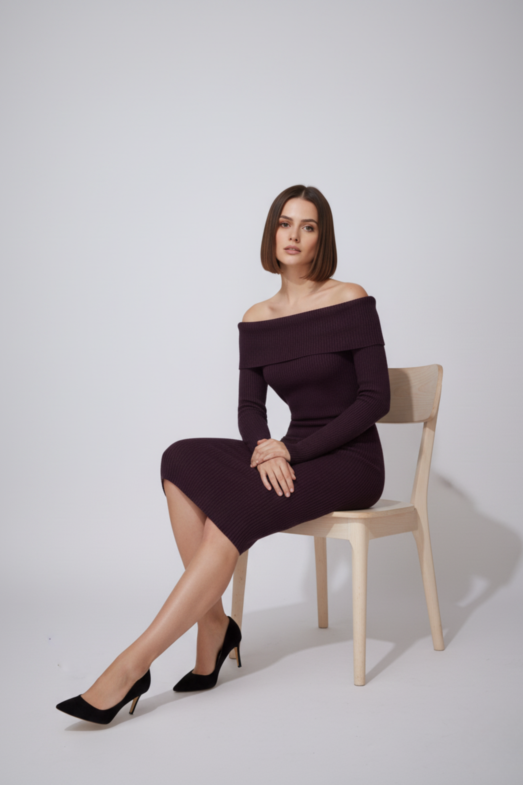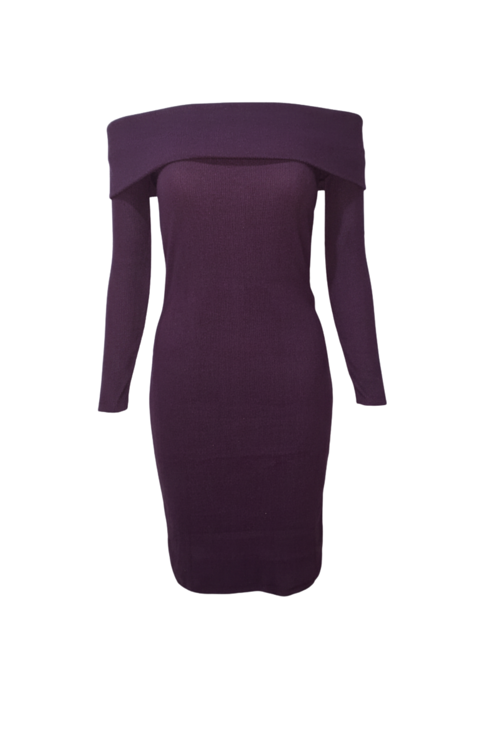 Kadın Mor Dizüstü Madonna Yaka Elbise