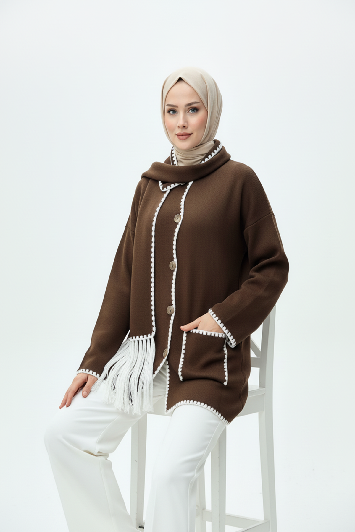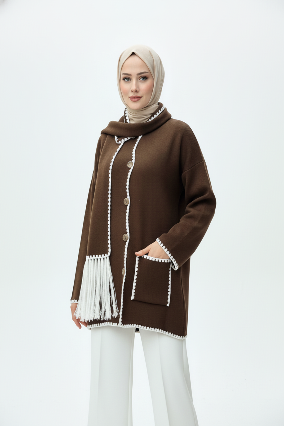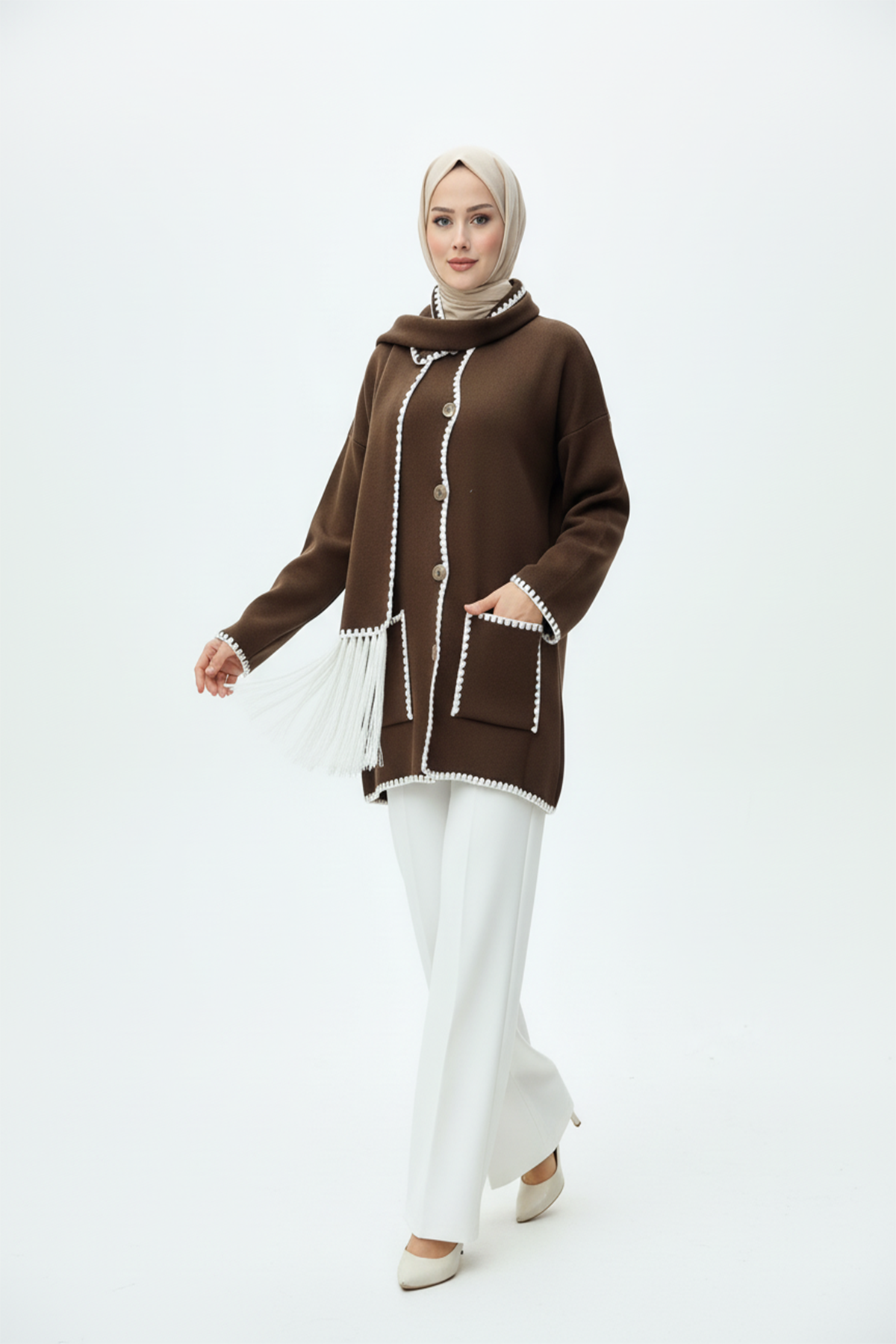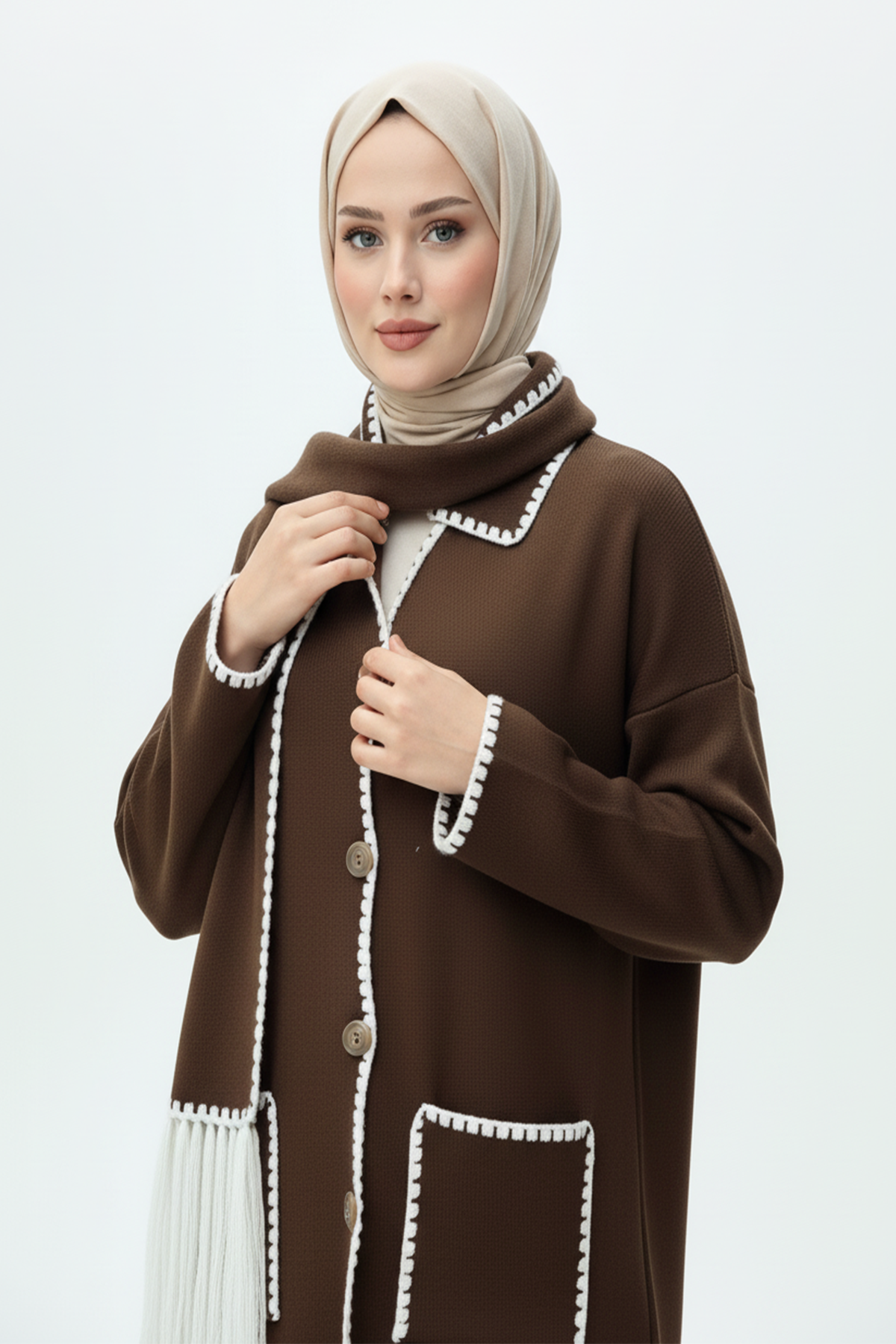 Kadın Nakış Detaylı Atkılı Yumuşak Ceket – Kahverengi, zarif detayları ve sıcak dokusuyla şıklığı konforla buluşturuyor. İnce nakış işlemeleri, cekete feminen bir zarafet katarken, yumuşak kumaşı gün boyu konforlu bir kullanım sağlar. Uyumlu atkı detayı, hem tarzınıza özgün bir dokunuş yapar hem de soğuk havalarda ekstra sıcaklık sunar. Kahverenginin doğal ve sofistike tonuyla, günlük kombinlerde ya da şehir stilinde fark yaratmak isteyen kadınlar için mükemmel bir seçim!