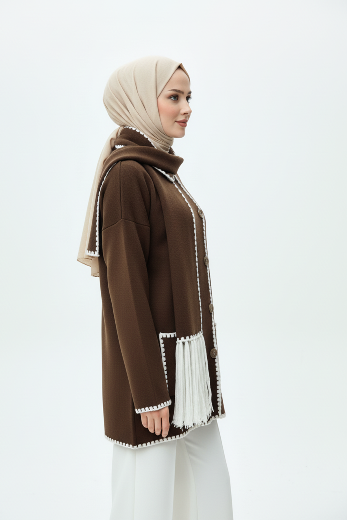 Kadın Nakış Detaylı Atkılı Yumuşak Ceket – Kahverengi