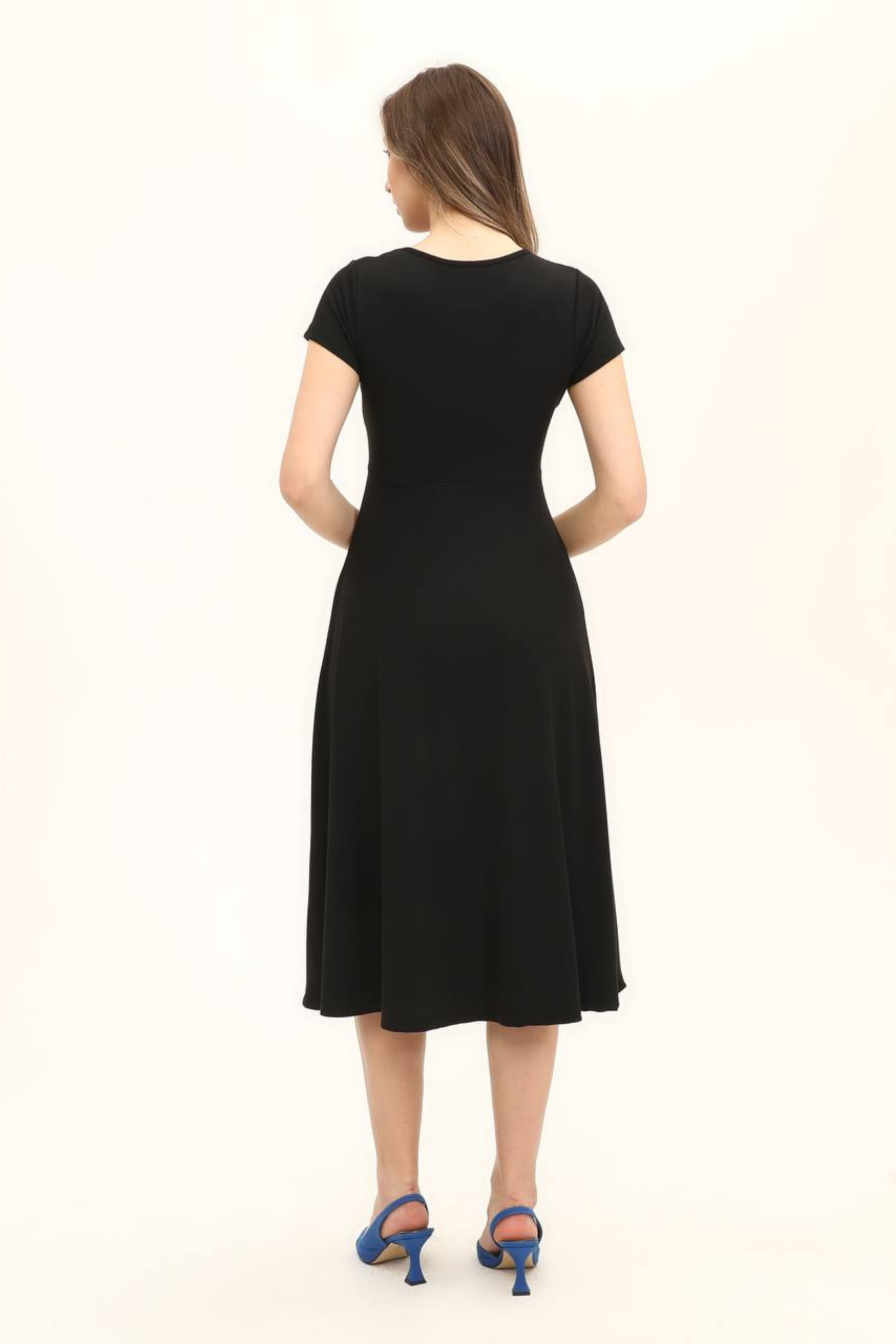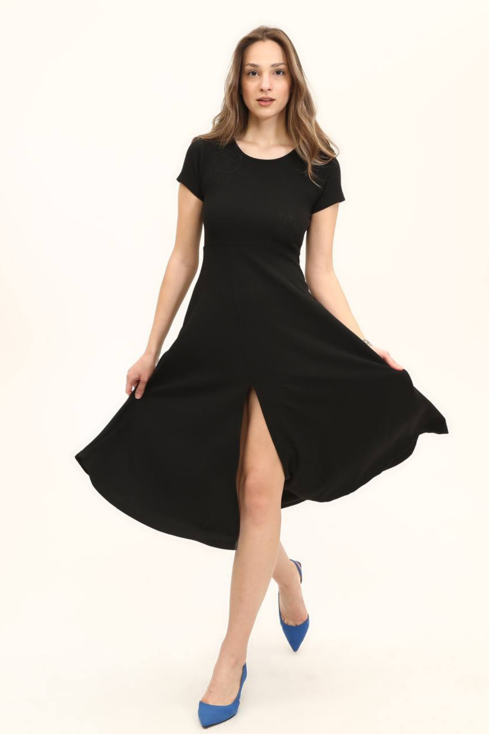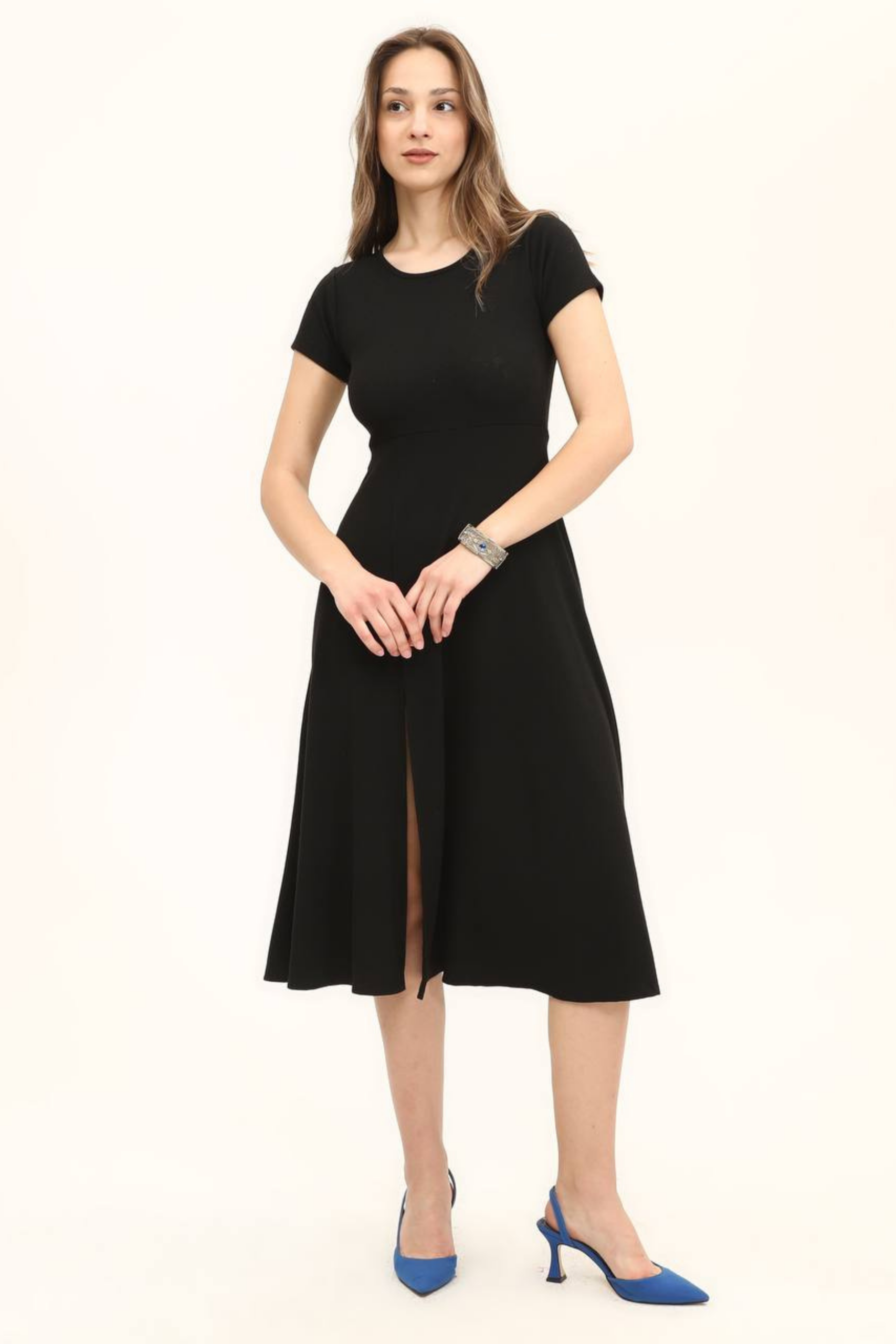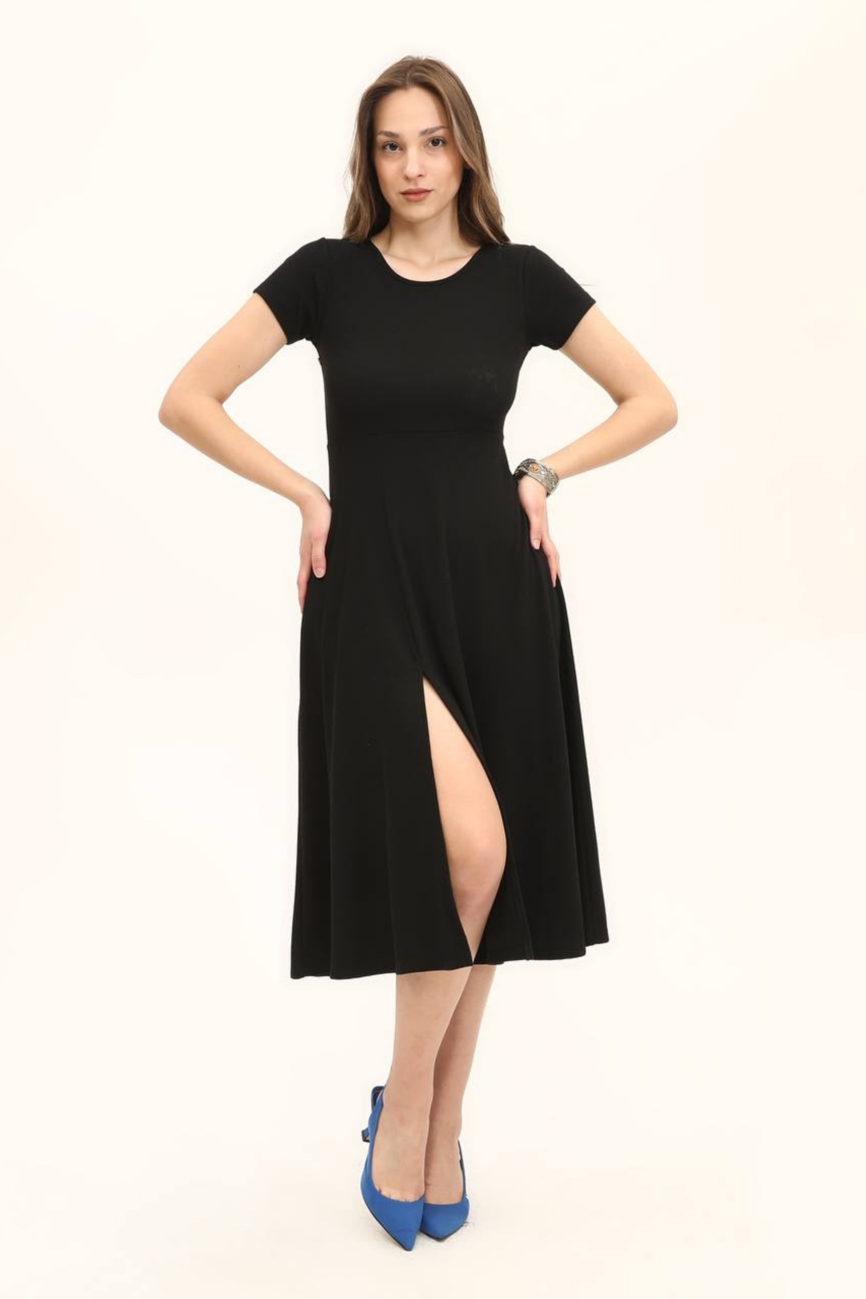 Etek kısmındaki yırtmaç detayı, her adımda özgün bir hareket ve şıklık katarak dikkat çekici bir görünüm sağlar. Siyahın klasik zarafeti, minimal tasarım ile birleşerek ister günlük stilinizde ister özel davetlerde kolaylıkla tercih edebileceğiniz çok yönlü bir parça haline gelir.