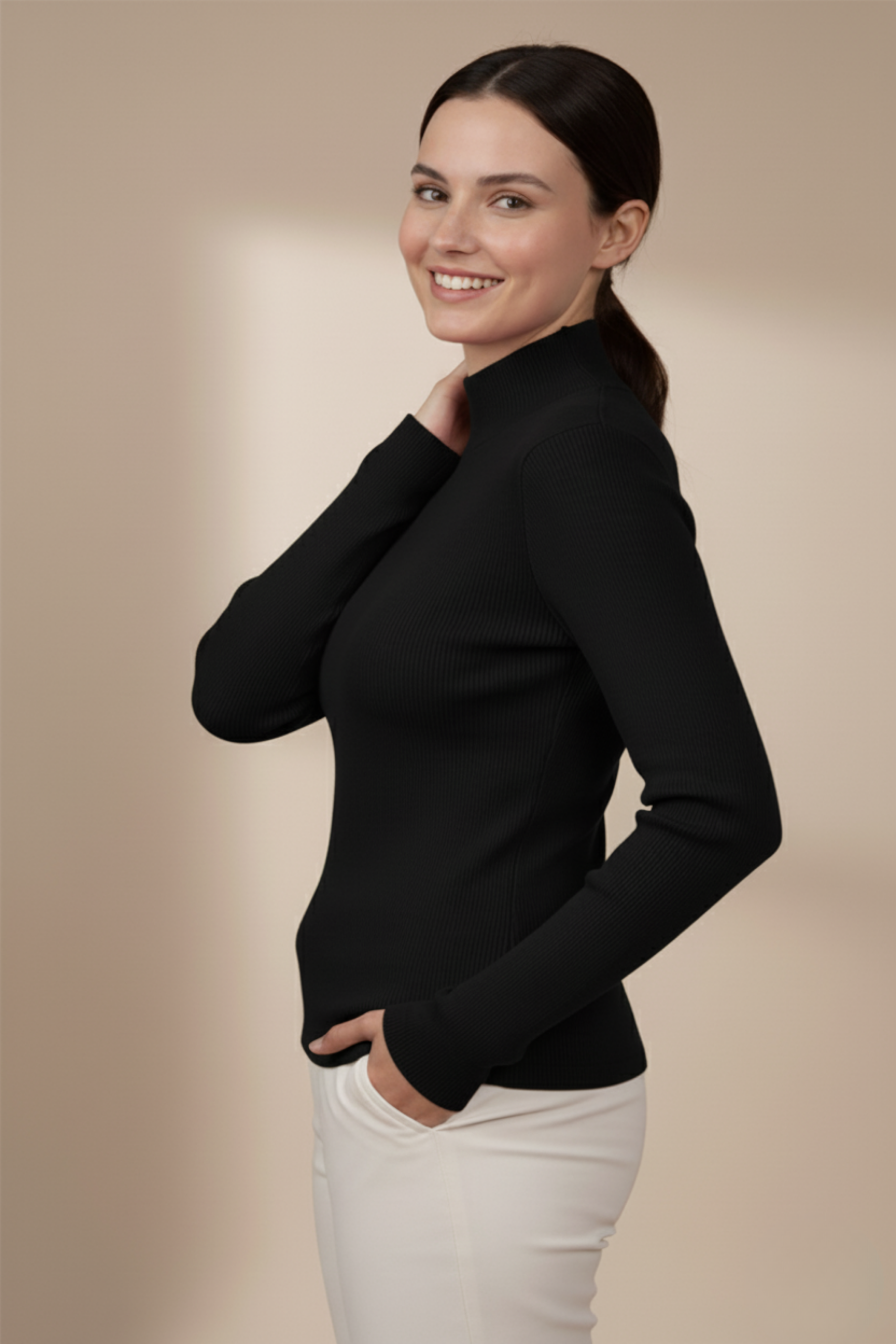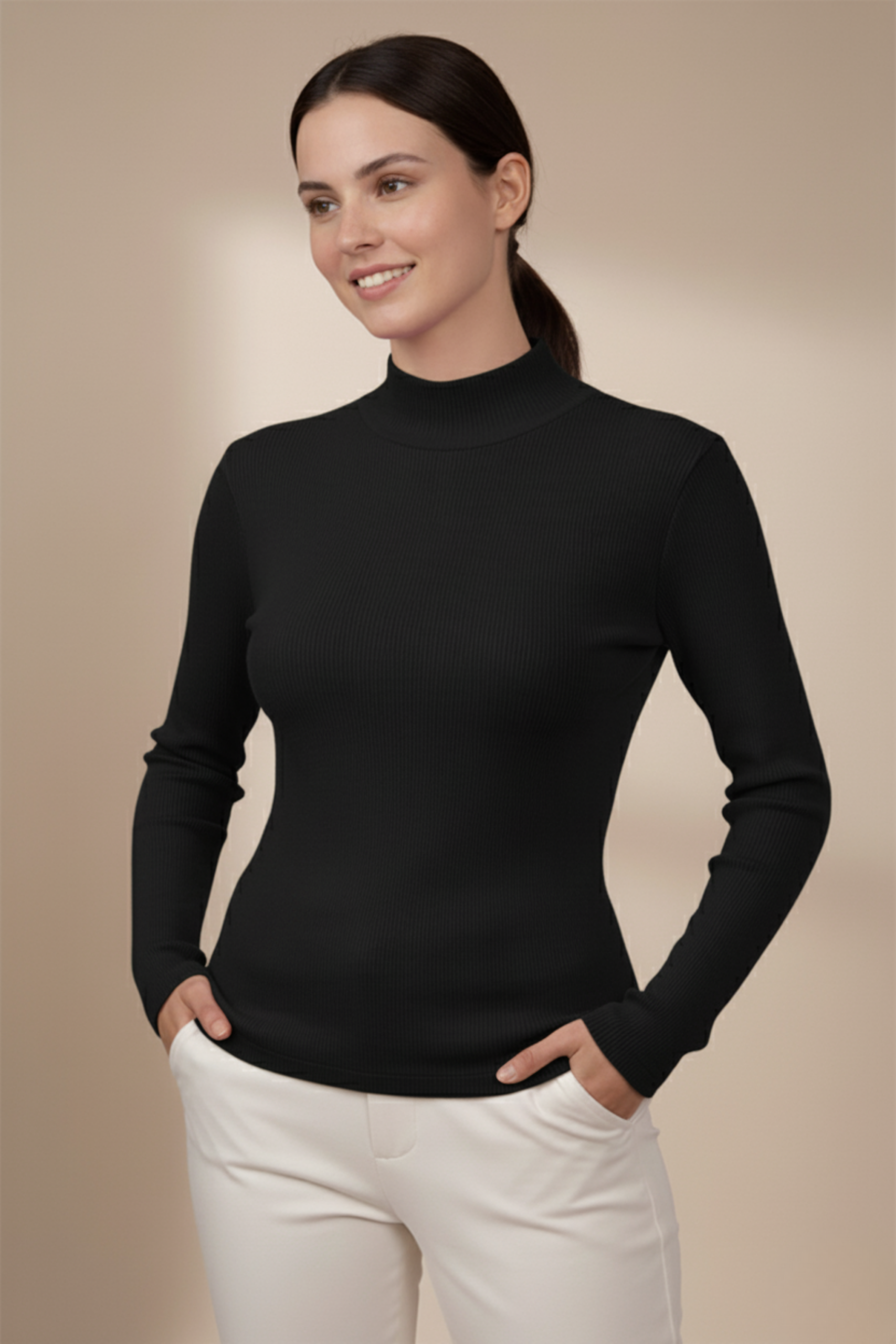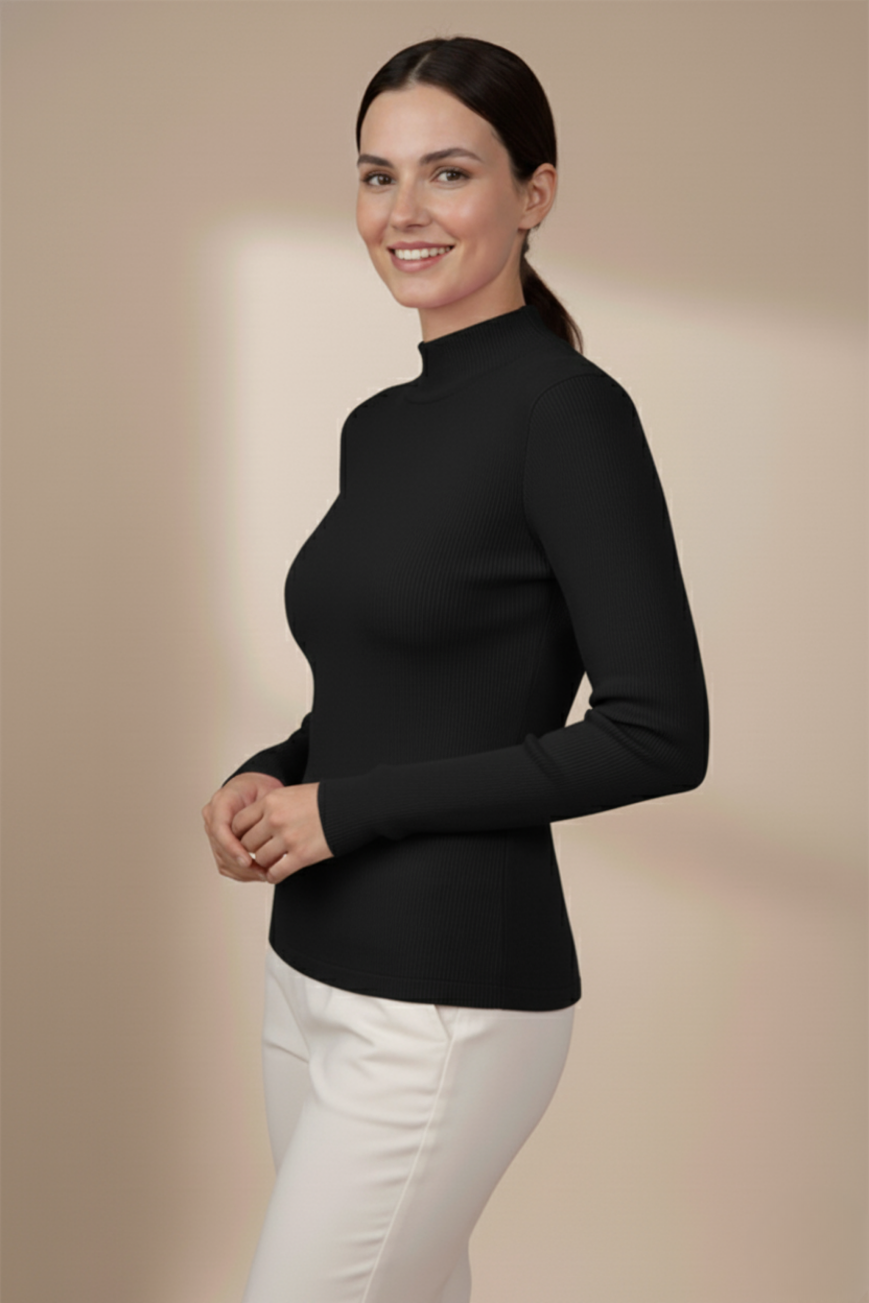 Kadın Siyah Balıkçı Yaka Bluz