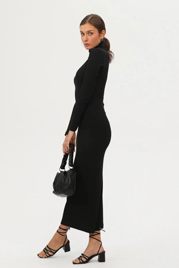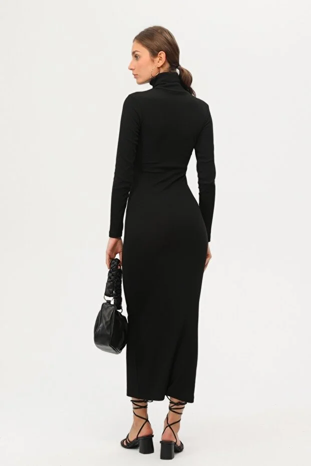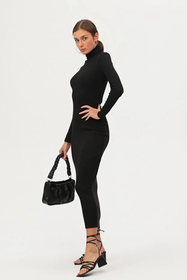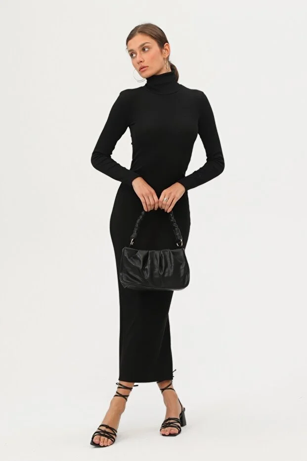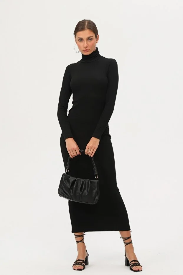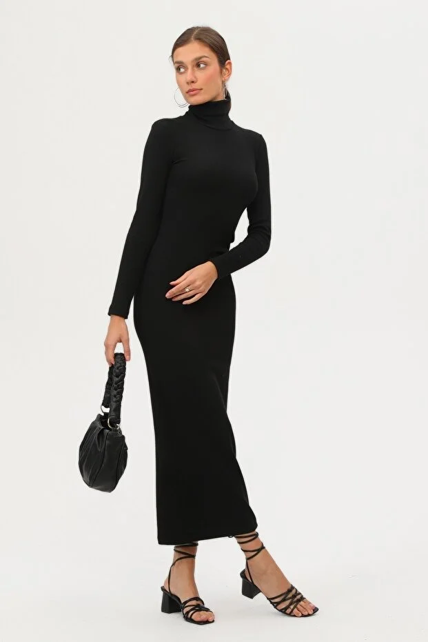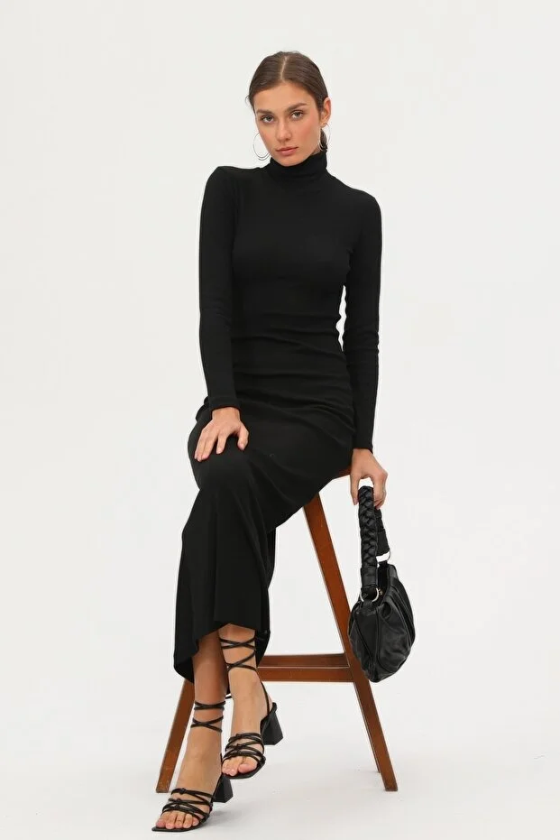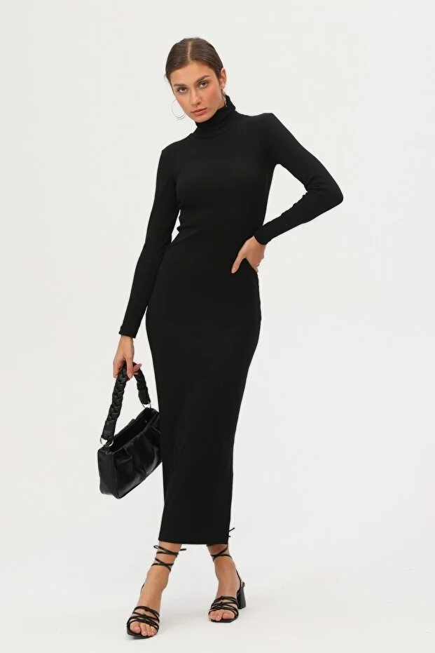 Kadın Siyah Boğazlı Uzun Maxi Elbise