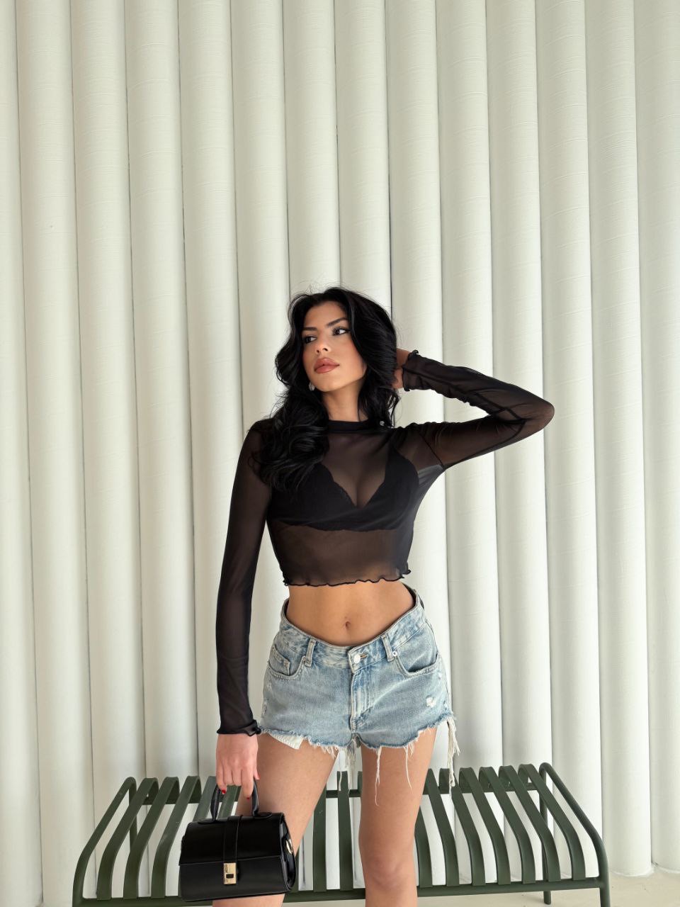 Vücuda oturan kesimiyle şık bir siluet oluşturur ve ister günlük hayatta ister özel davetlerde kolayca kombinlenebilir. Transparan tül detayları, sade şıklığı modern bir çizgiyle buluşturur. Jean, etek veya kumaş pantolonlarla eşleştirerek her ortamda dikkat çekici bir görünüm elde edebilirsin.