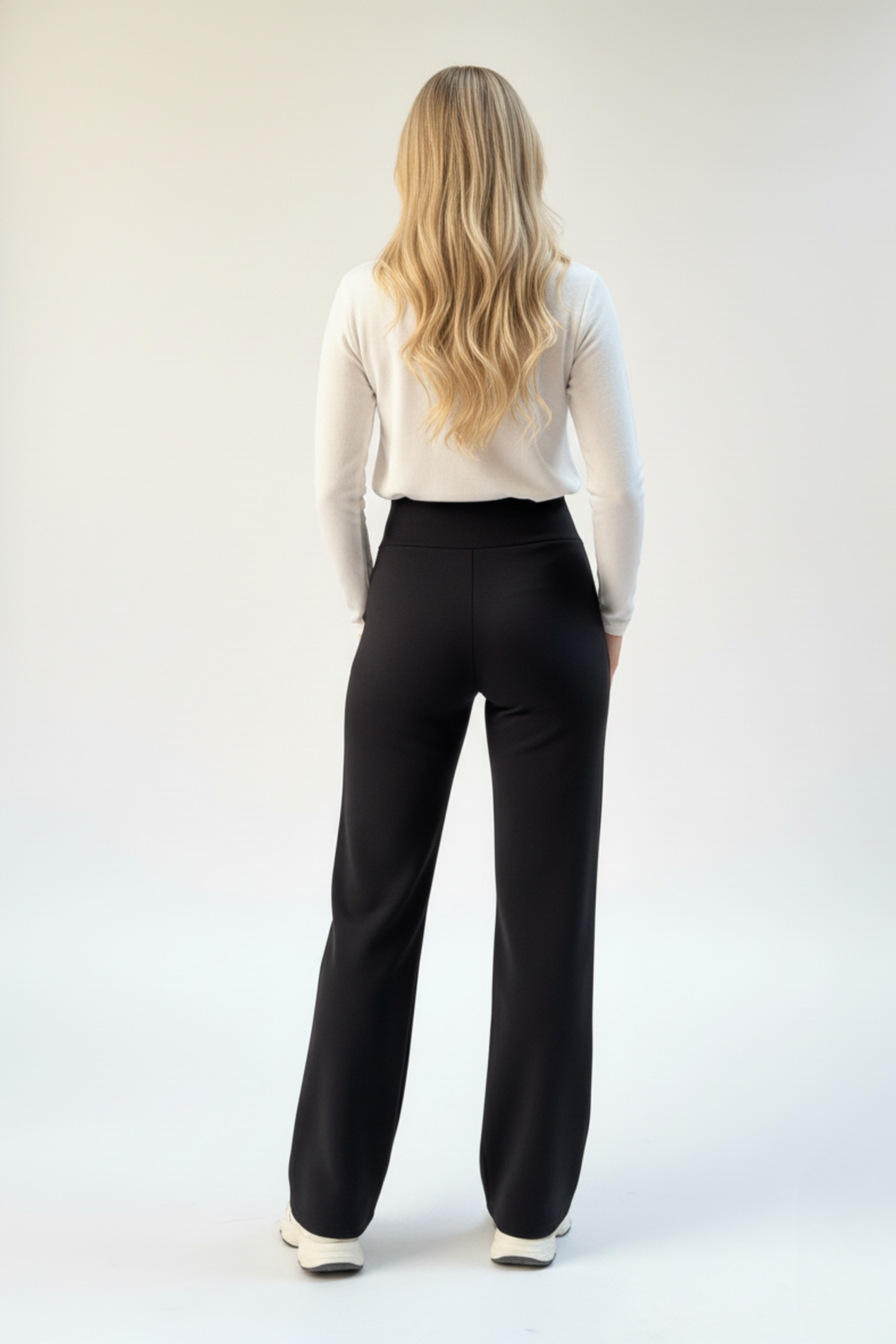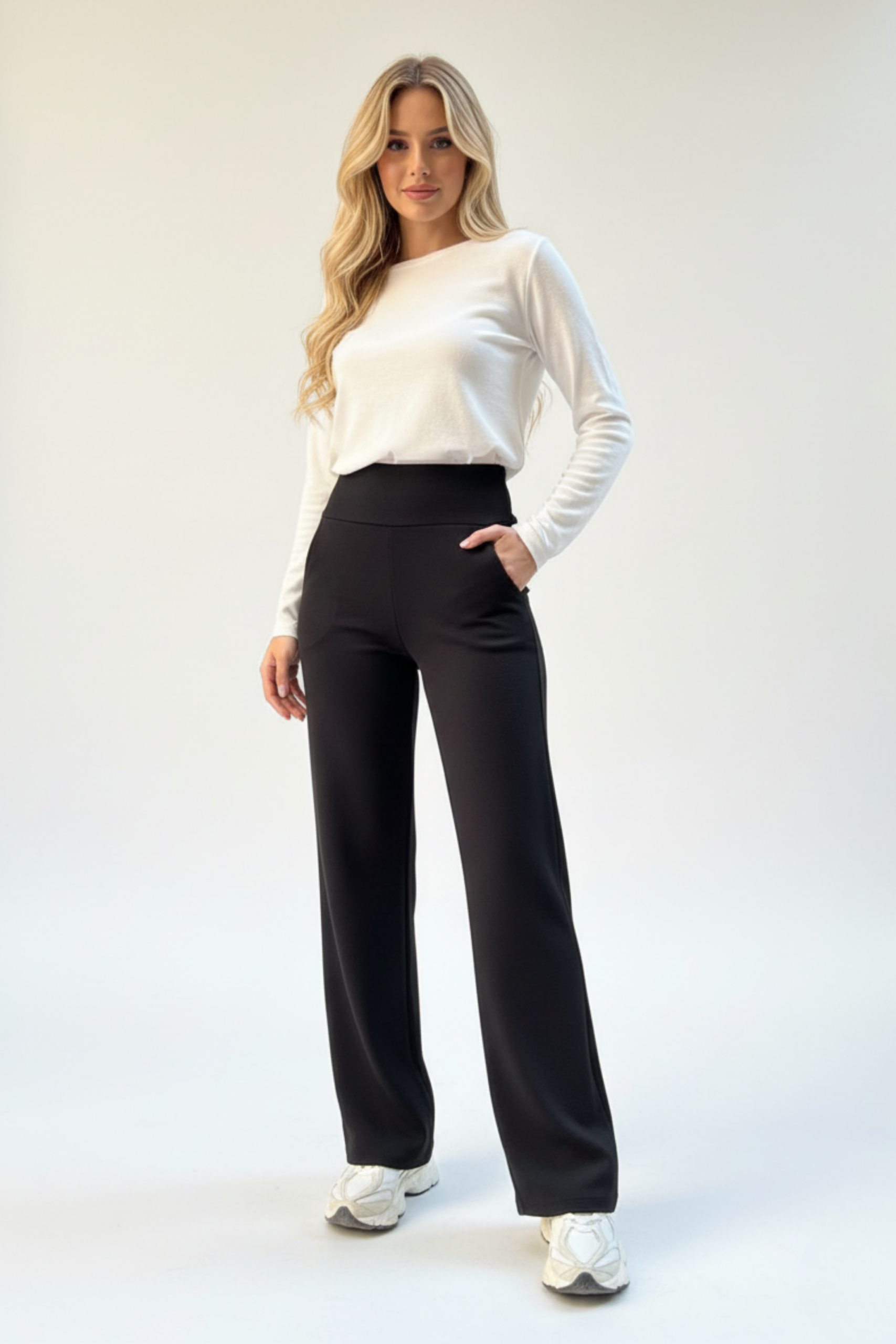 Kadın Süper Yüksek Bel Korsaj Bol Kesim Krep Pantolon – Siyah