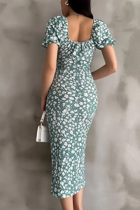 Büzgü ve drape detayları, elbiseye sofistike ve zarif bir dokunuş katar.