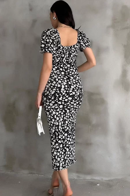Çiçek Desenli Elbise, Yırtmaçlı Elbise, Karpuz Kol Elbise, Bürümcük Elbise, Yaz Elbisesi, Renkli Elbise, Enerjik Elbise, Kadın Elbisesi