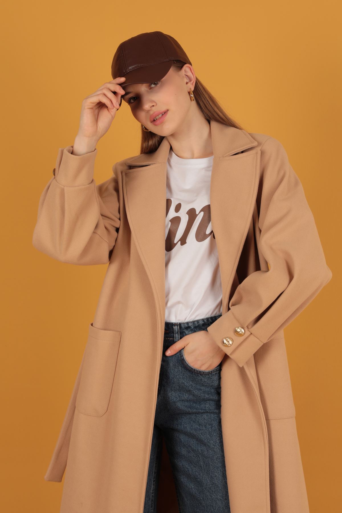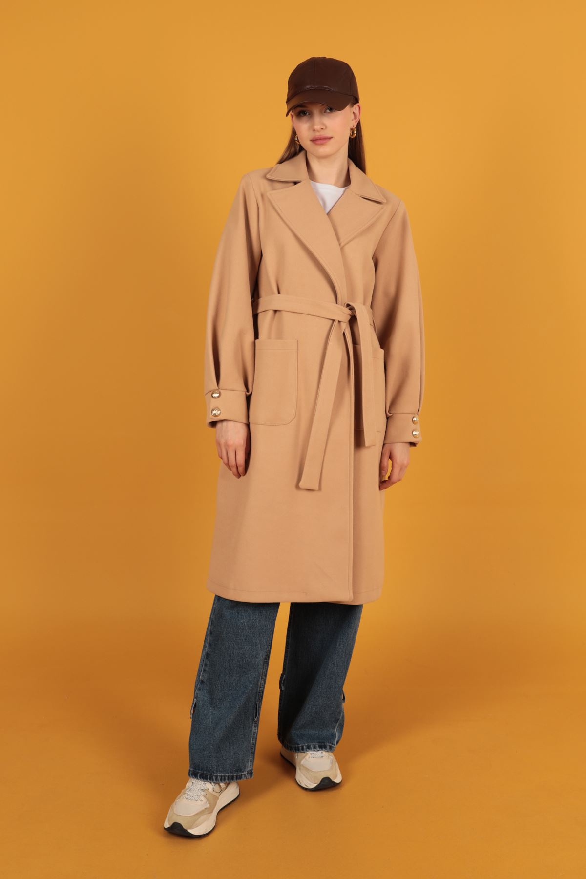 Soğuk mevsimlerde stilinden ödün vermeyen kadınlar için tasarlanan Somon renkli örme kaşe kaban, zarif tonuyla kış gardırobuna sıcak ve sofistike bir hava katıyor.