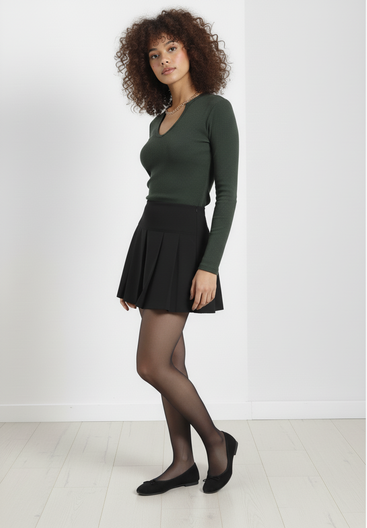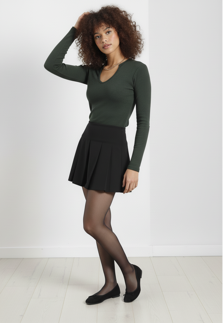 Yumuşak dokulu fitilli kaşkorse kumaşı %95 pamuk ve %5 likra içeriğiyle esnek, nefes alabilir ve konforlu bir kullanım sağlar. Slim fit kalıbı sayesinde vücut hatlarını nazikçe sarar ve şık bir siluet oluşturur.