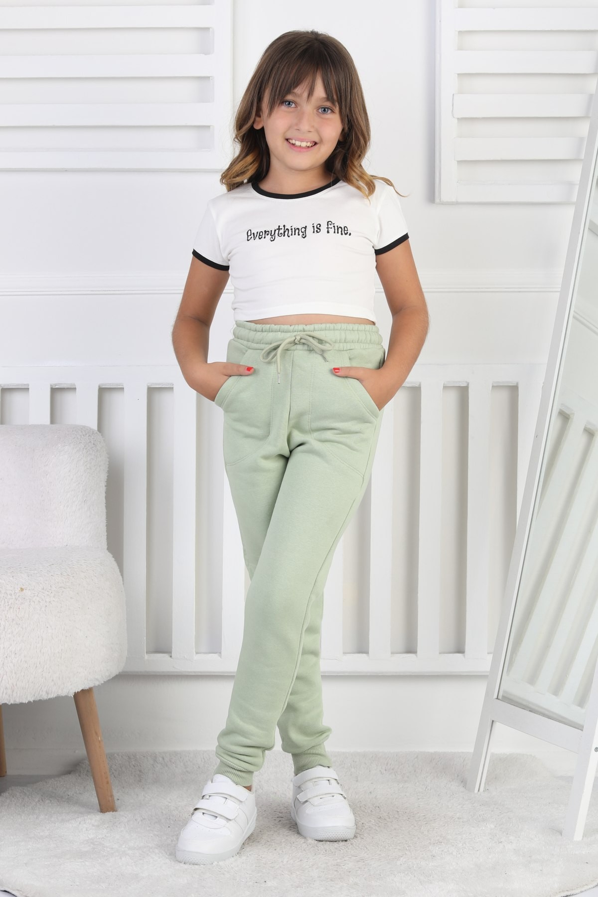 Şardonlu 3 İplik Düz Kız Çocuk Eşofman Altı