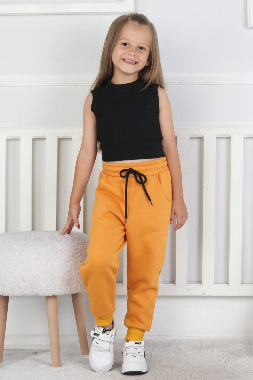Şardonlu 3 İplik Düz Kız Çocuk Hardal Rengi Eşofman Altı