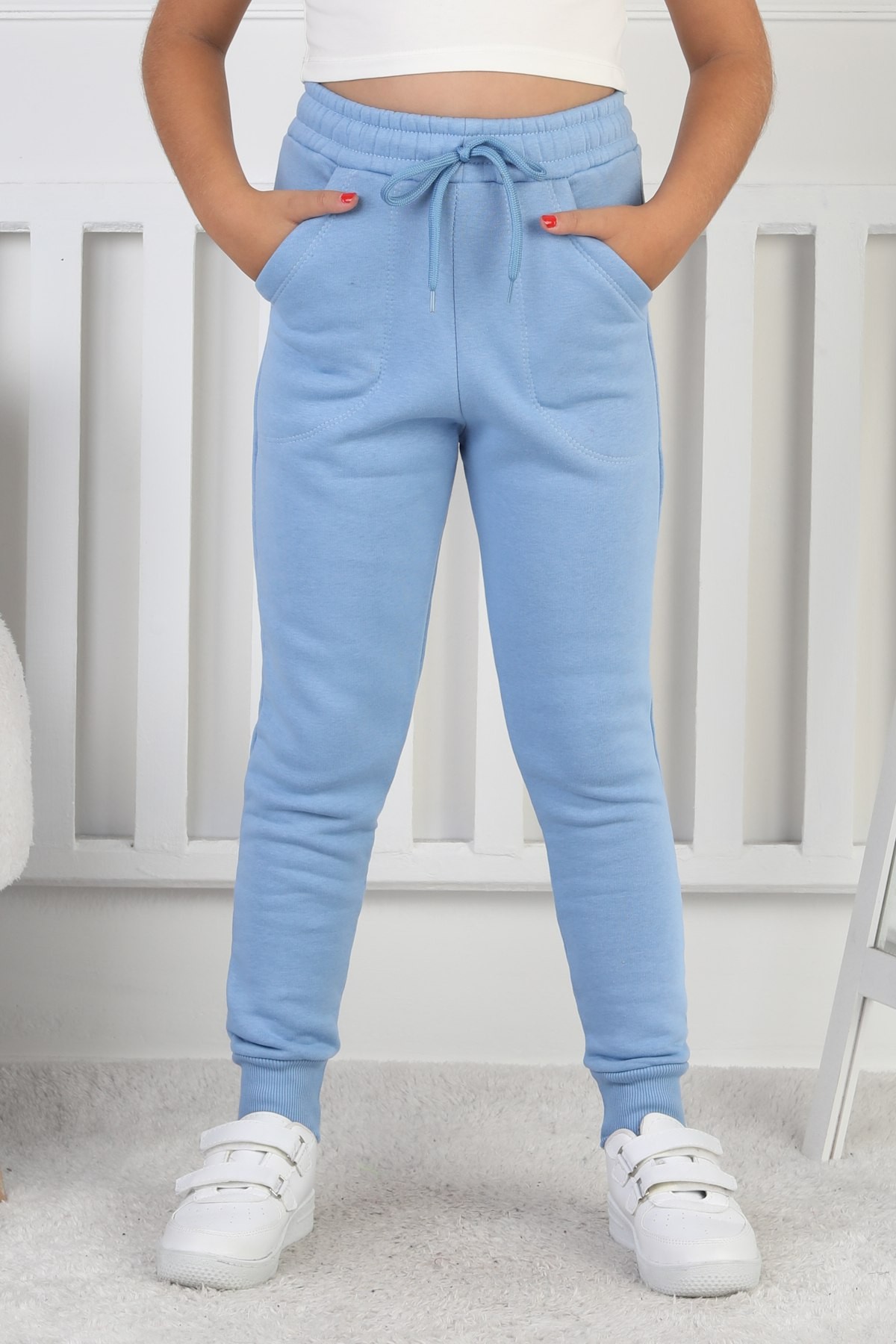 Şardonlu 3 İplik Düz Kız Çocuk Mavi Eşofman Altı
