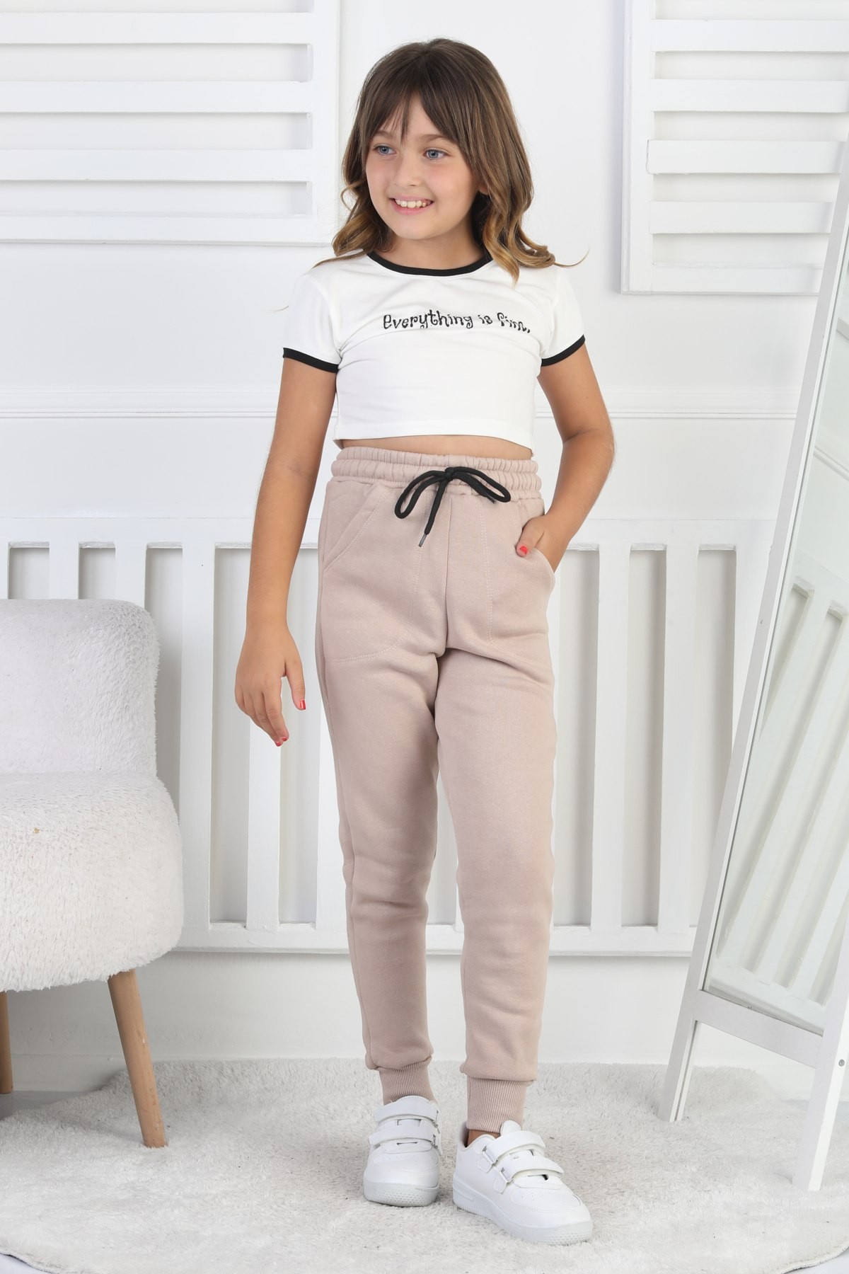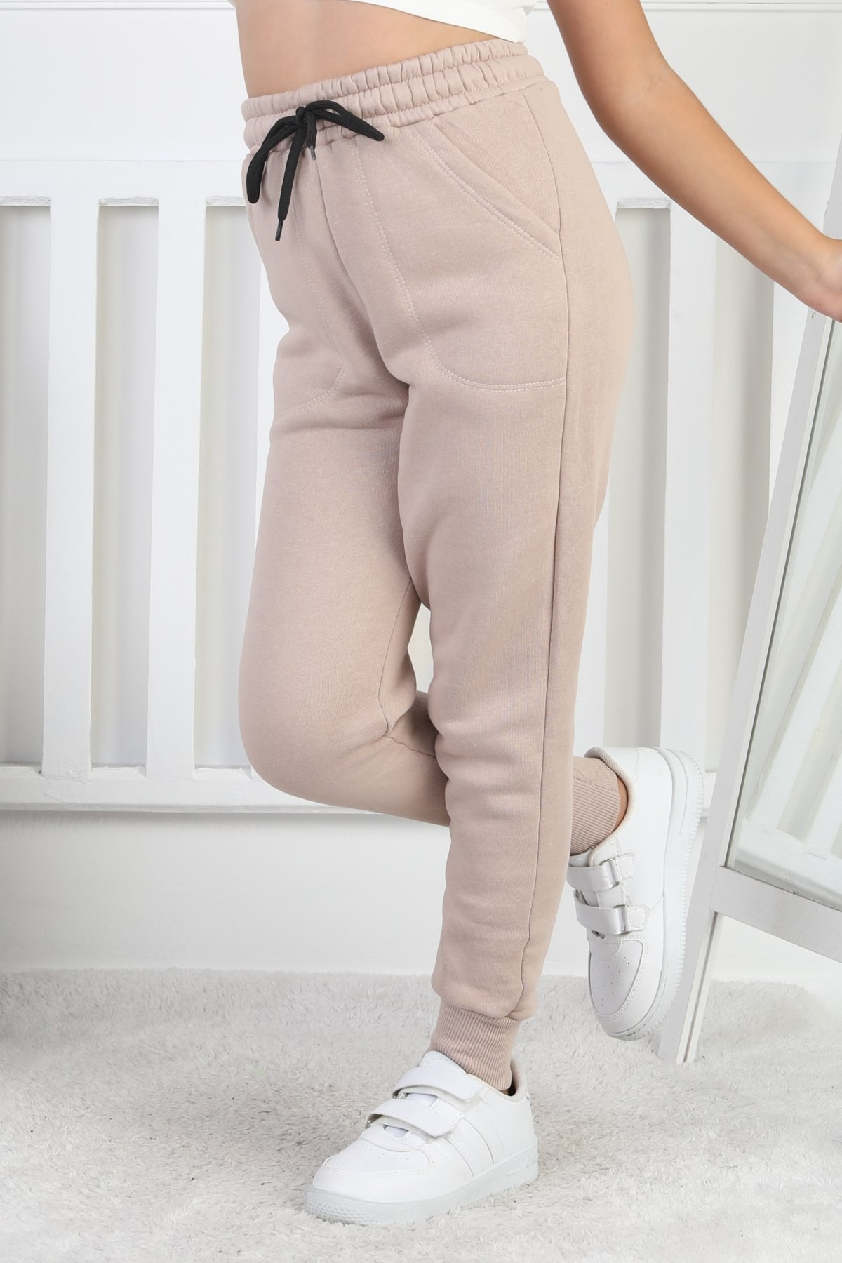 Şardonlu 3 İplik Düz Kız Çocuk Vizon Eşofman Altı