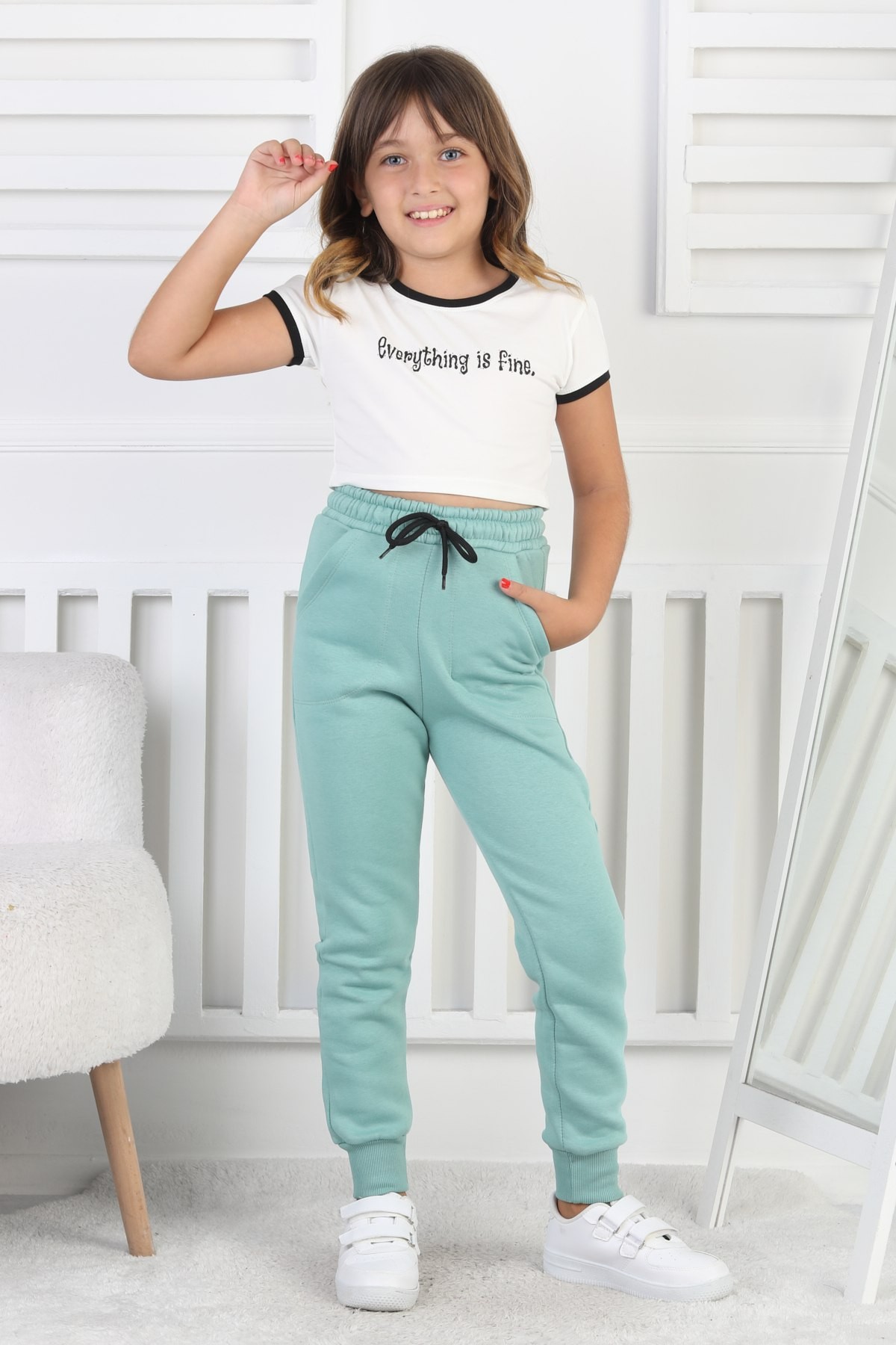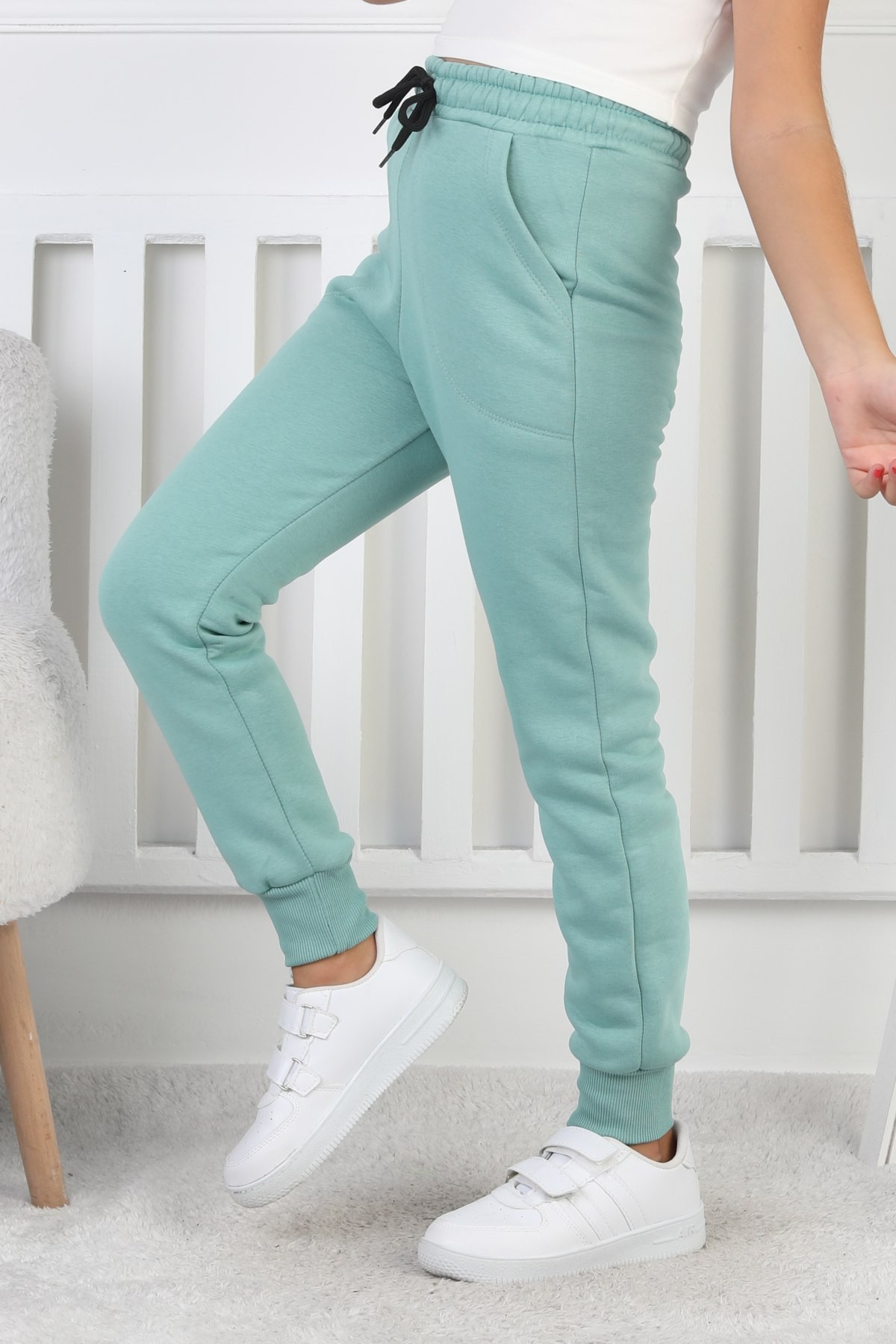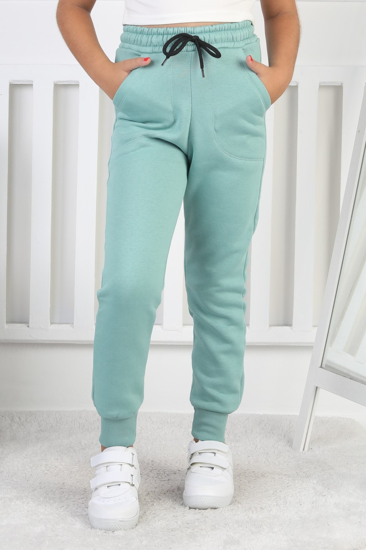 Şardonlu 3 İplik Düz Kız Çocuk Yeşil Eşofman Altı
