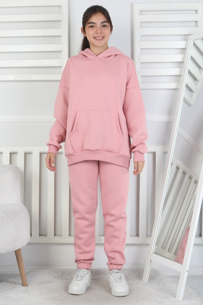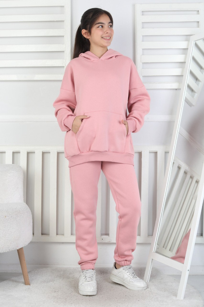 Şardonlu 3 İplik Kapşonlu Kız Çocuk İkili Takım