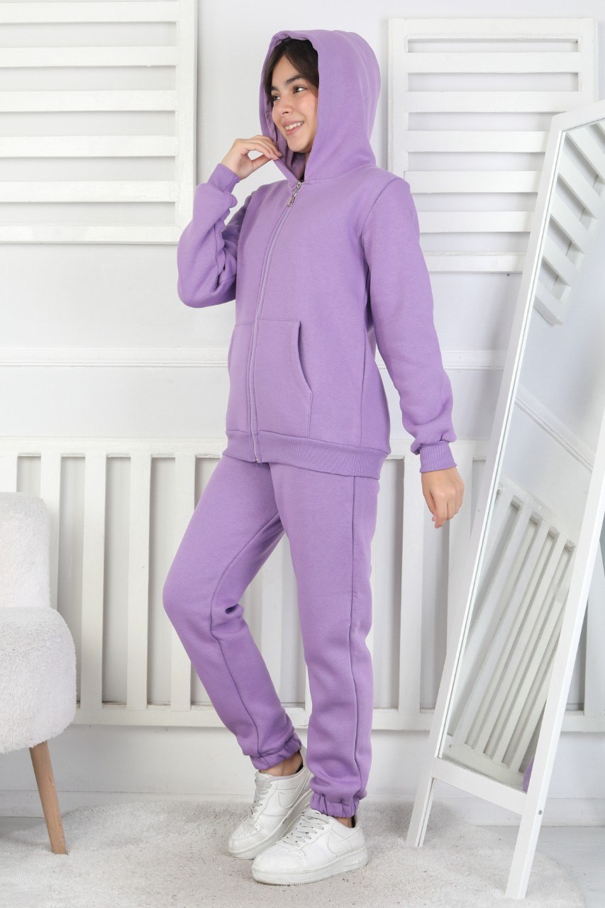 Şardonlu 3 İplik Kapşonlu Kız Çocuk Lila İkili Takım