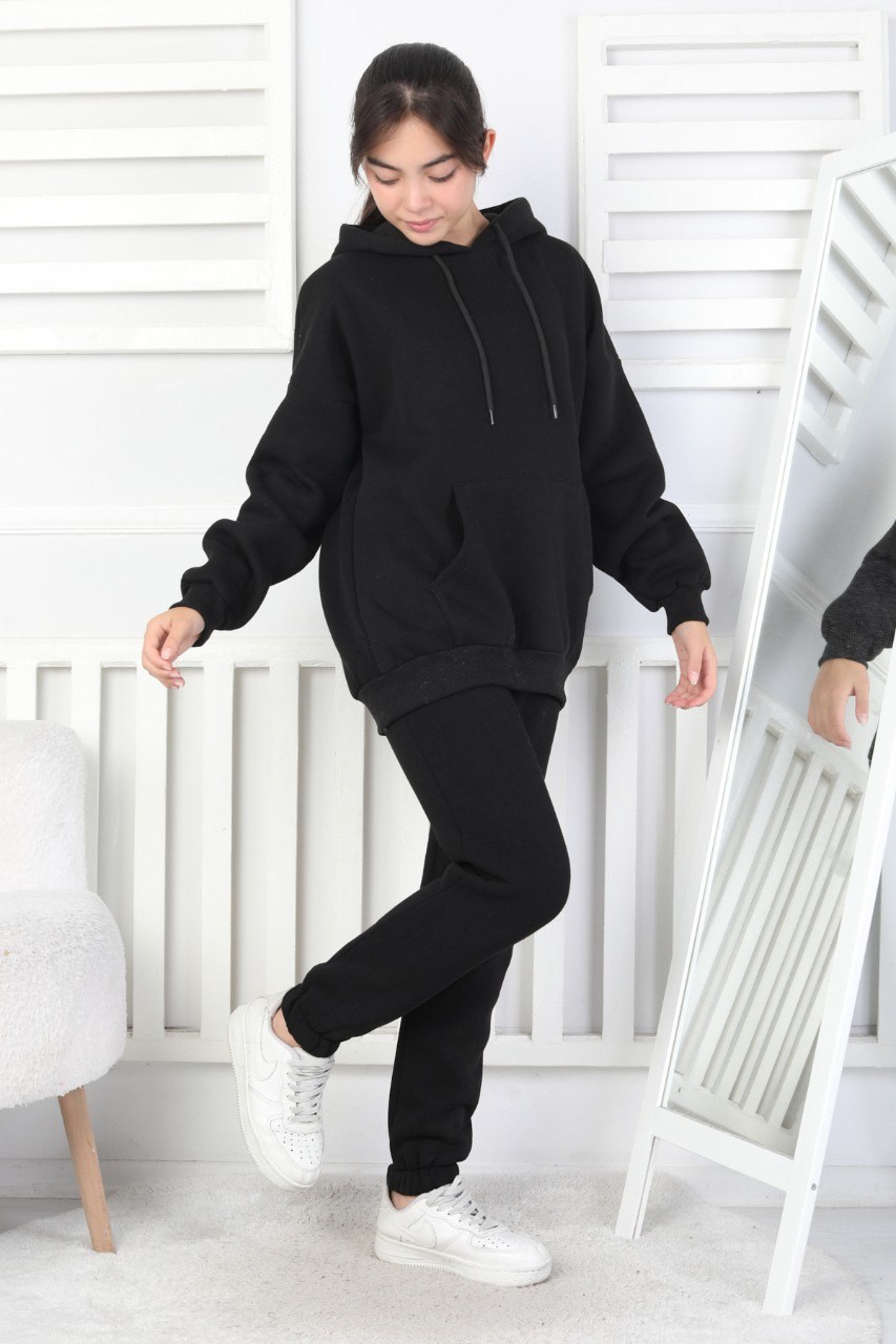 Şardonlu 3 İplik Kapşonlu Kız Çocuk Takım