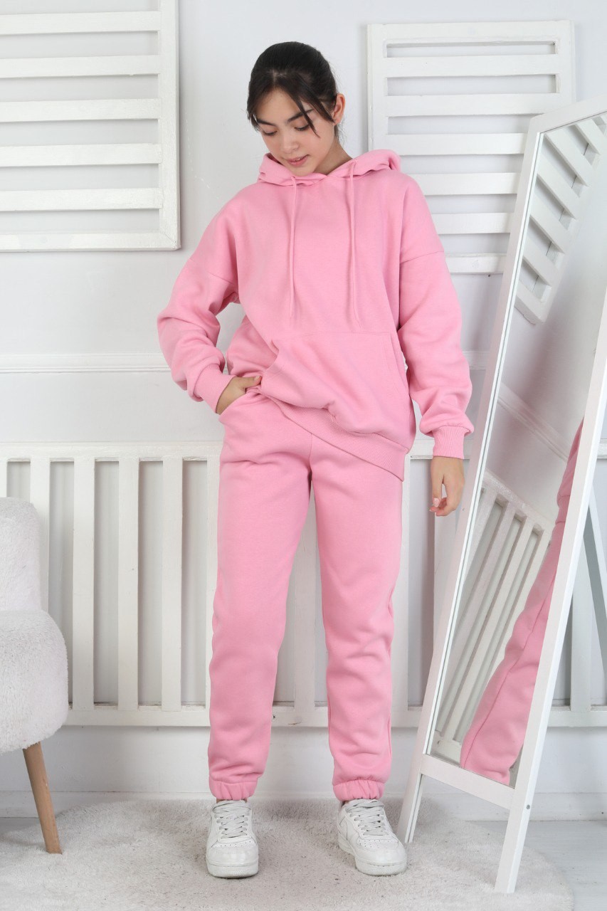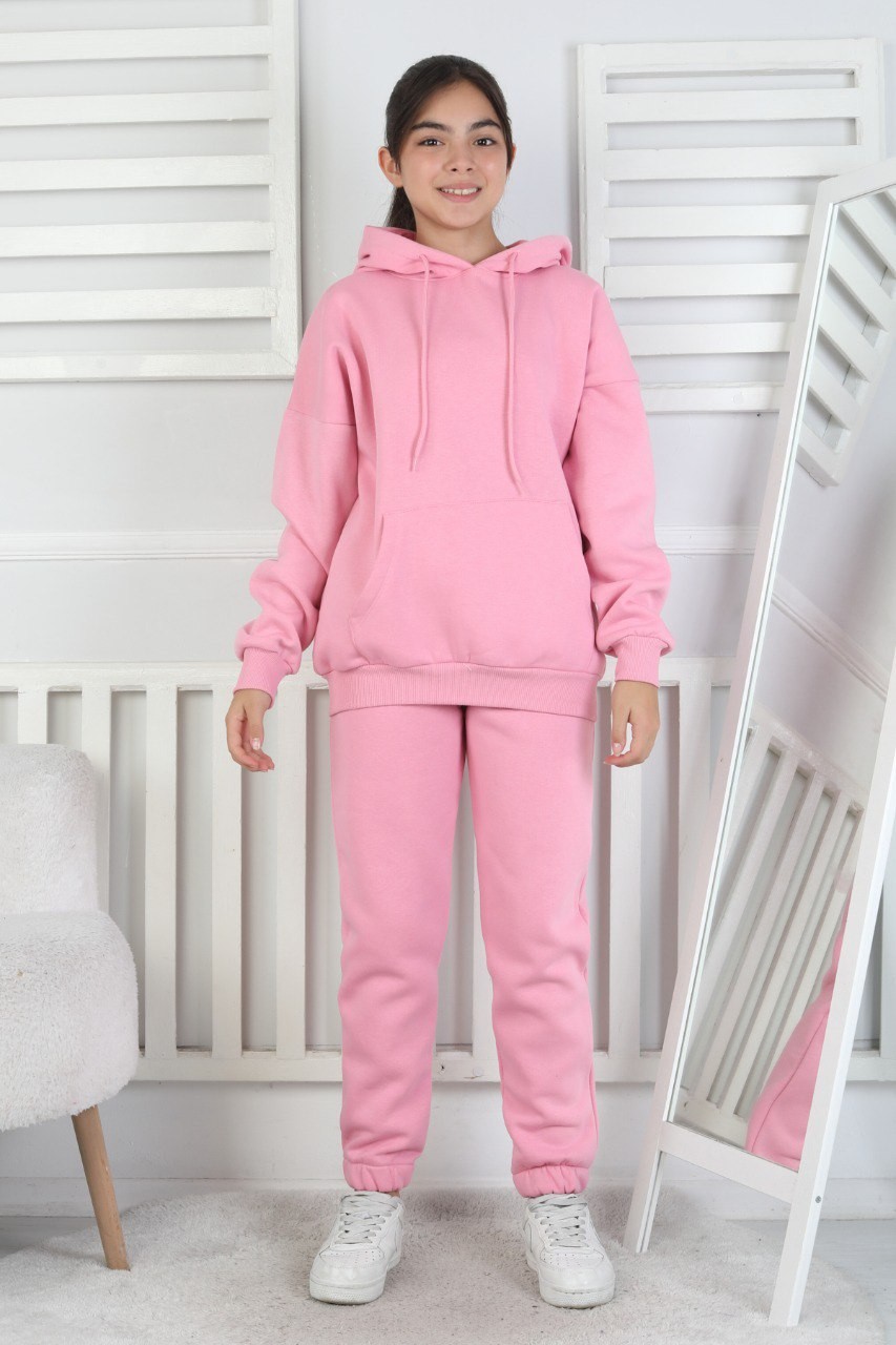 Şardonlu 3 İplik Kapşonlu Kız Çocuk Takım