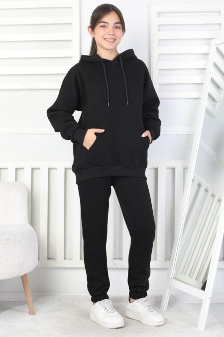 Şardonlu 3 İplik Kapşonlu Kız Çocuk Takım