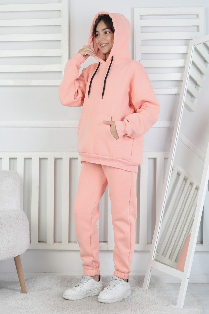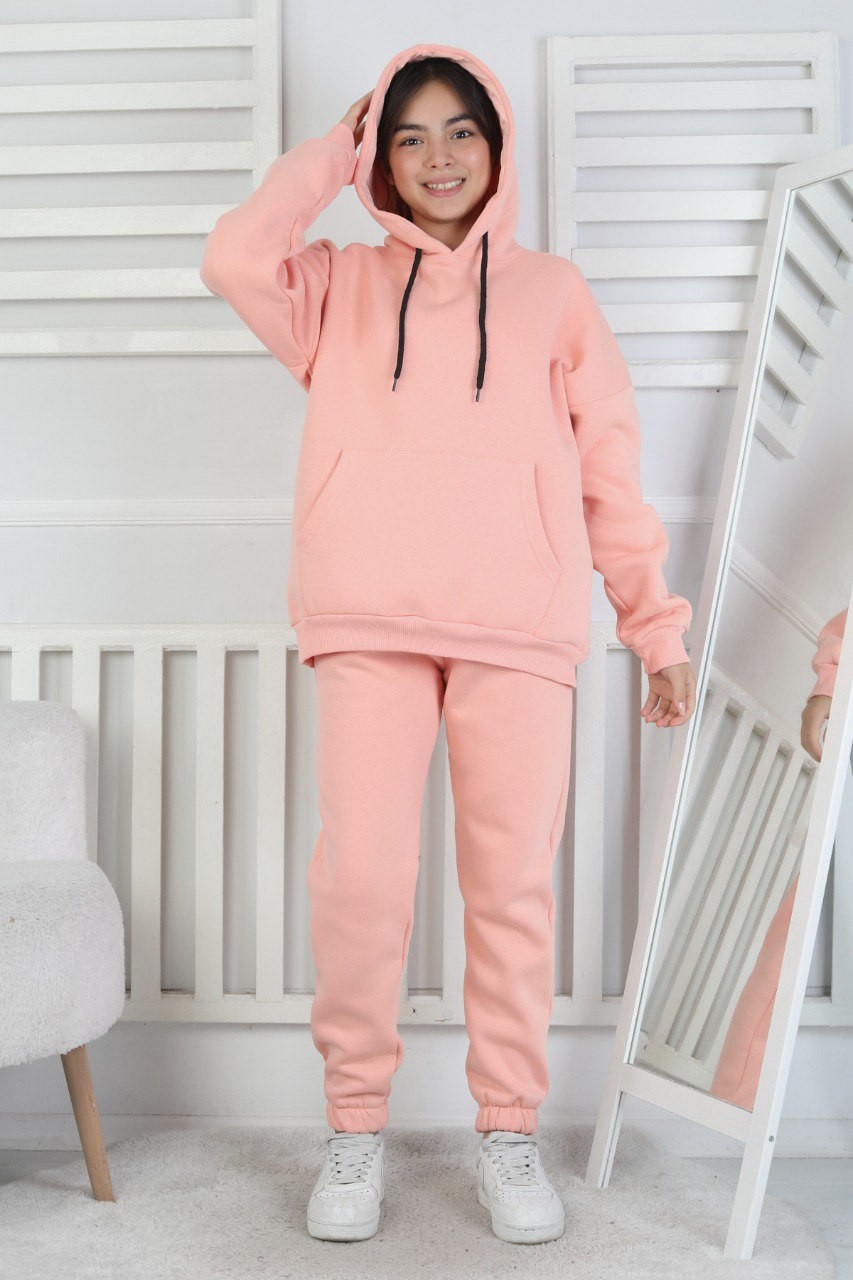 · Şardonlu 3 iplik kumaşı ile üretilen kapşonlu kız çocuk takım, kış aylarında sıcak tutar;