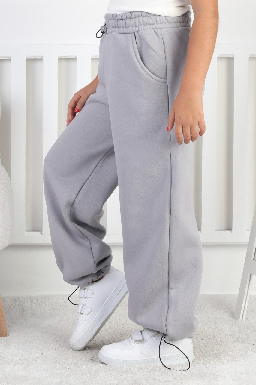 · Şardonlu 3 iplik kumaşı ile üretilen kız çocuk eşofman altı, kış aylarında sıcak tutar;