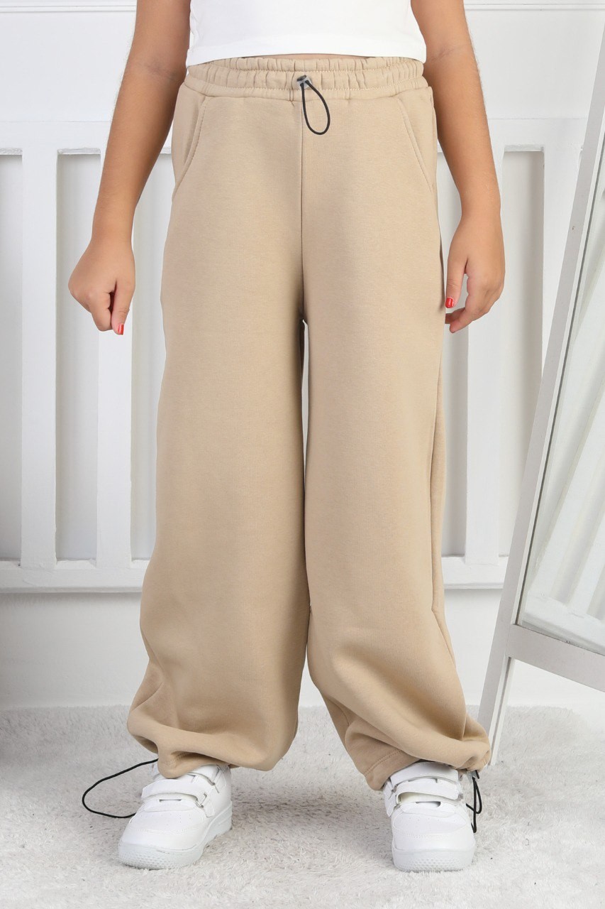 · Şardonlu 3 iplik kumaşı ile üretilen kız çocuk eşofman altı, kış aylarında sıcak tutar;