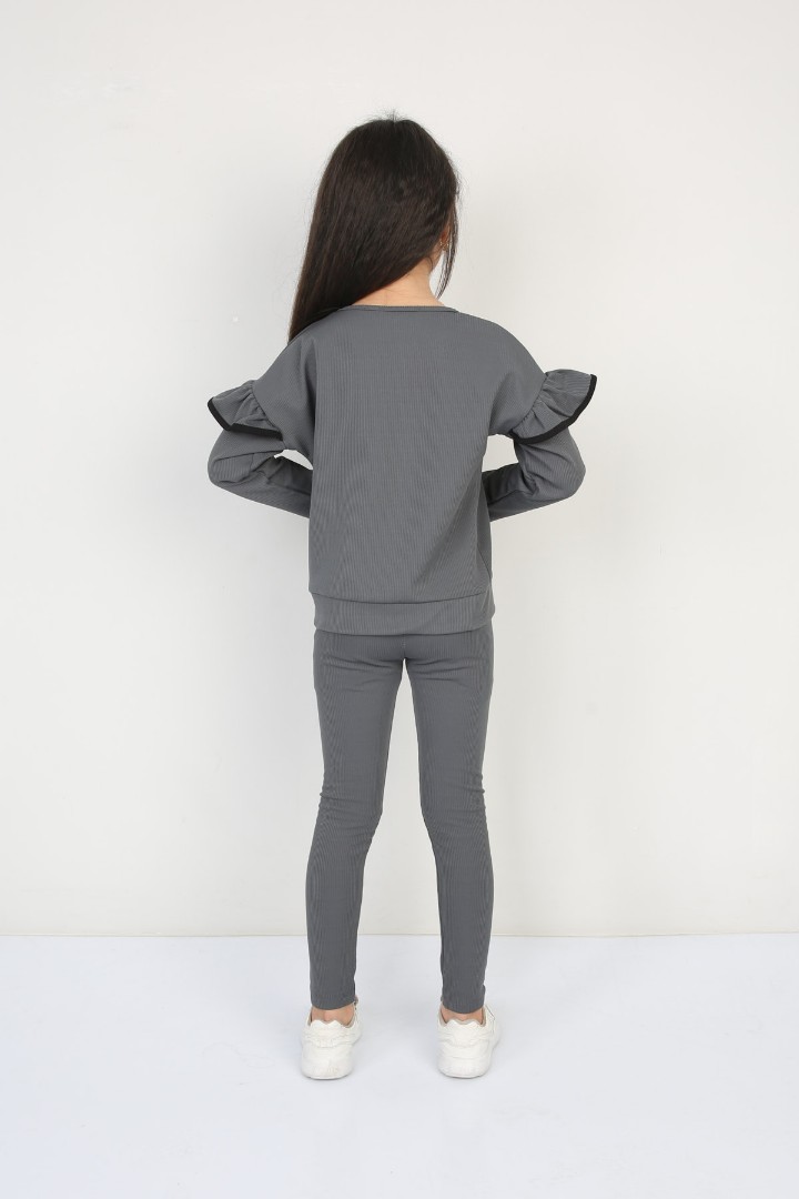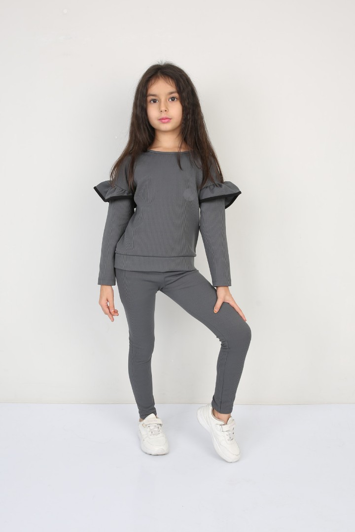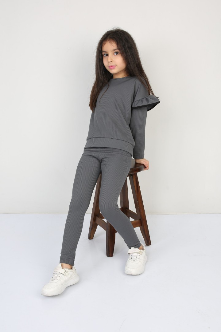 Şardonlu Fitilli Fırfır Detaylı Taytlı Günlük Kız Çocuk Takım