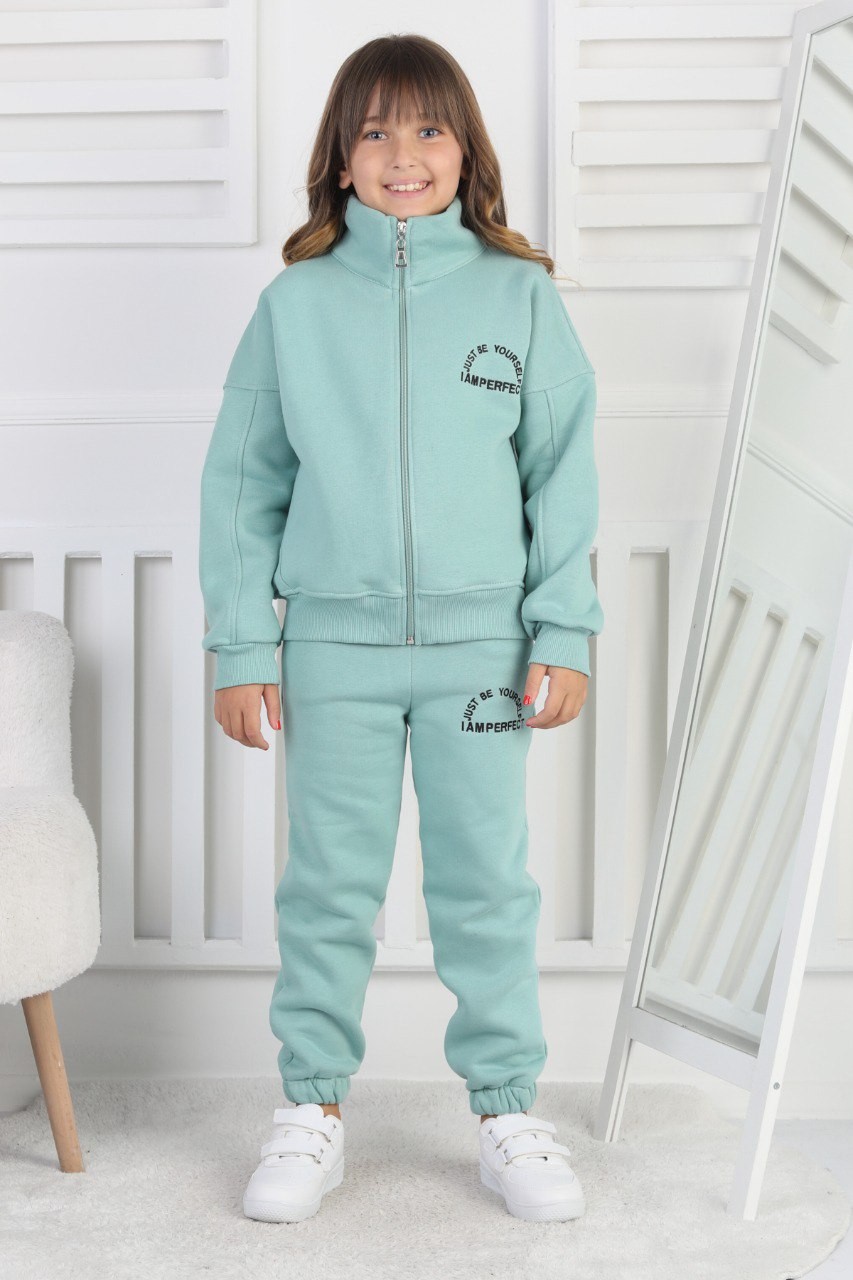 Üç İplik Fermuarlı Baskılı Kız Çocuk Takım
