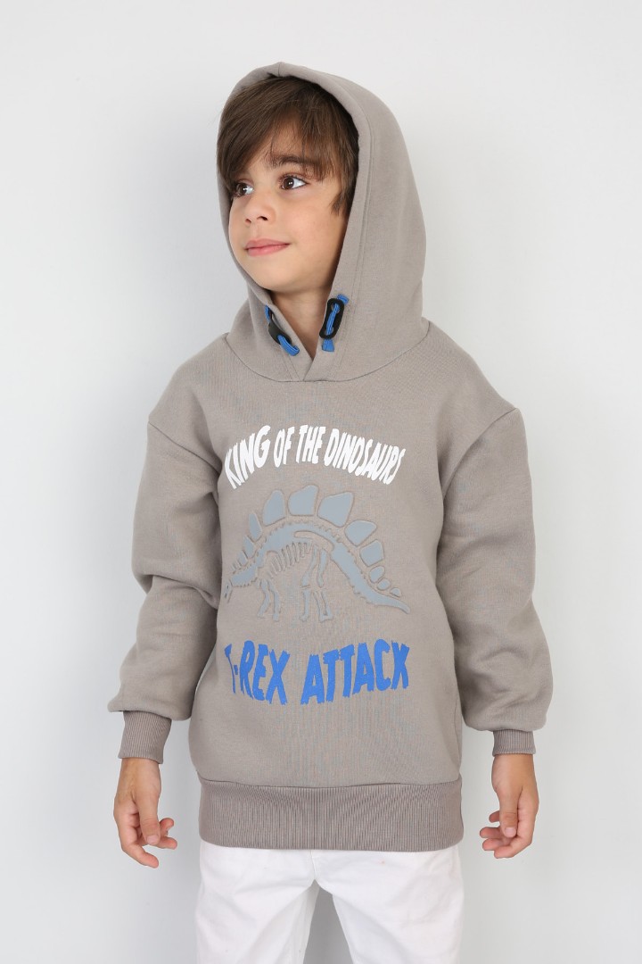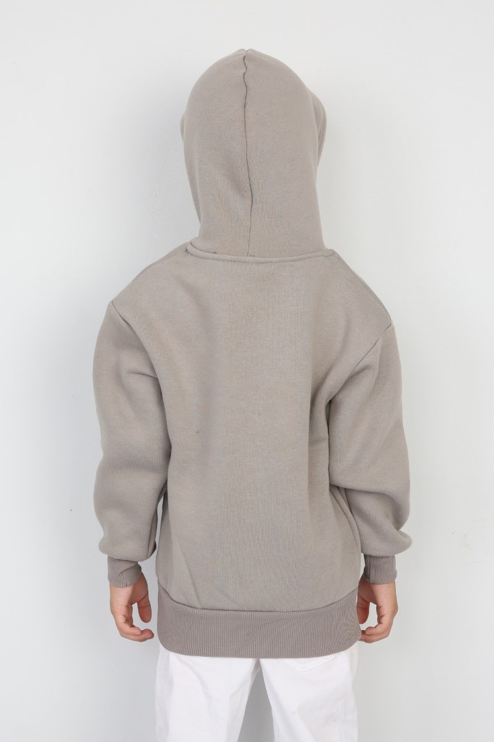 Üç İplik Şardonlu Baskılı Kapşonlu Erkek Çocuk Günlük Sweatshirt
