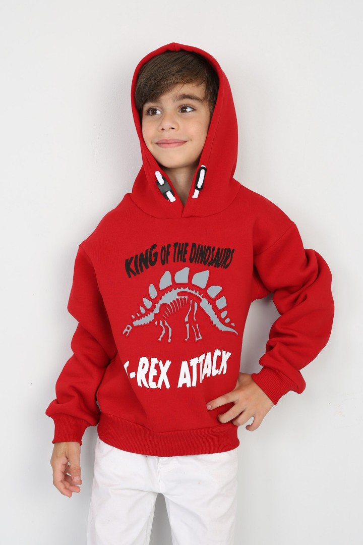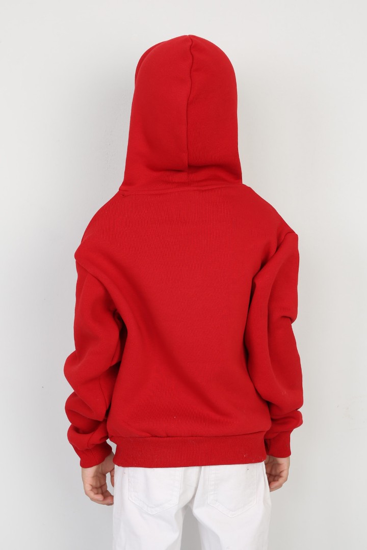 Üç İplik Şardonlu Baskılı Kapşonlu Erkek Çocuk Günlük Sweatshirt