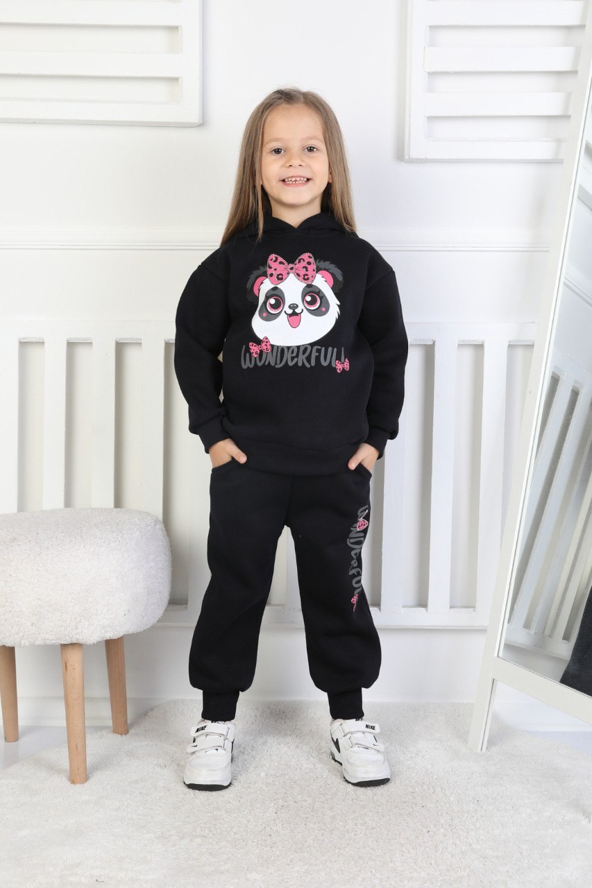 · Üç İplik Şardonlu Baskılı Kapüşonlu Kız Çocuk Takım, kış ve serin havalar için idealdir;