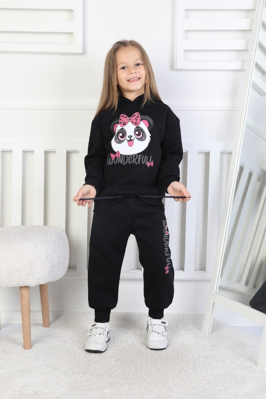 Üç İplik Şardonlu Baskılı Kapüşonlu Kız Çocuk Takım