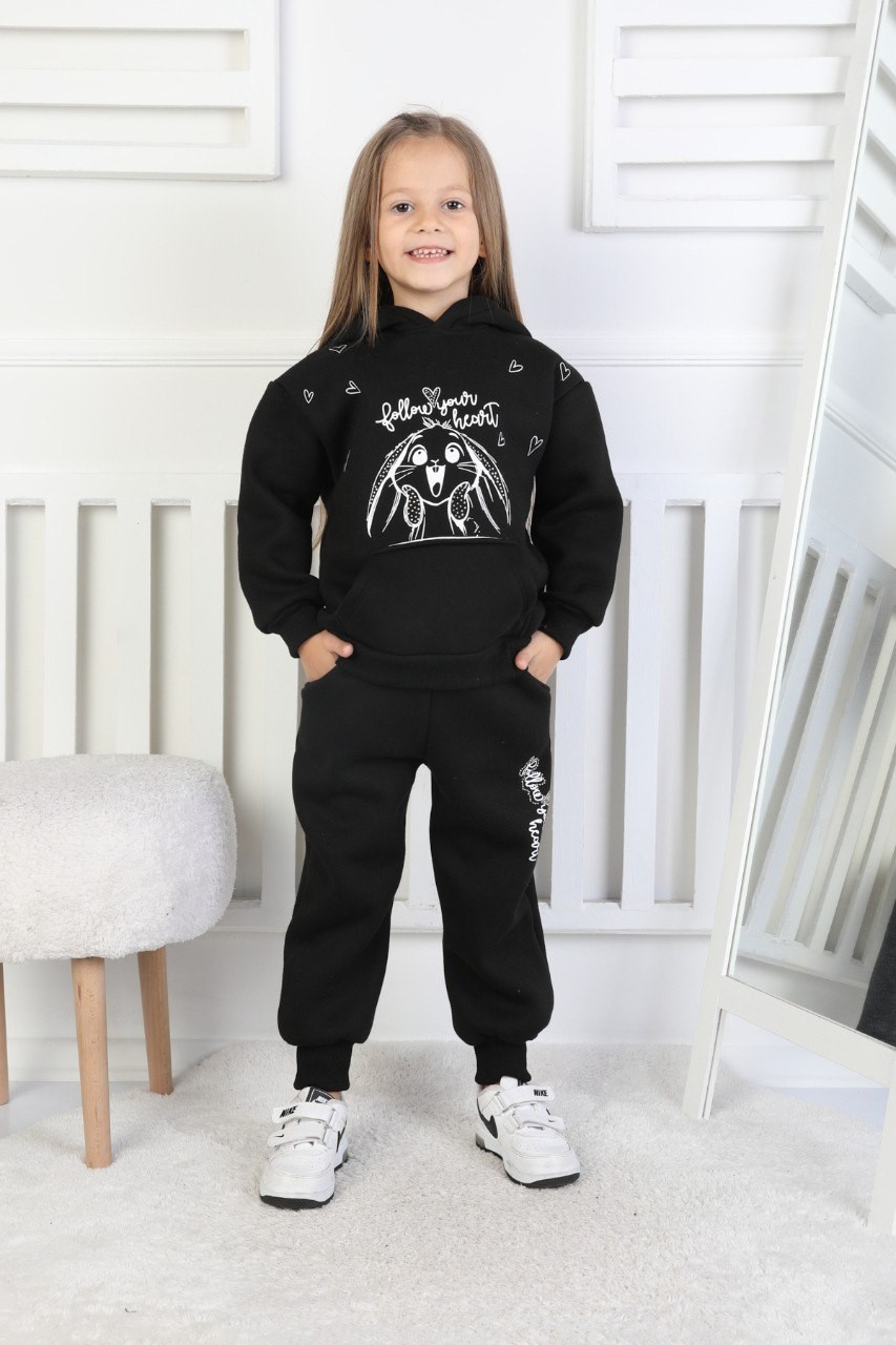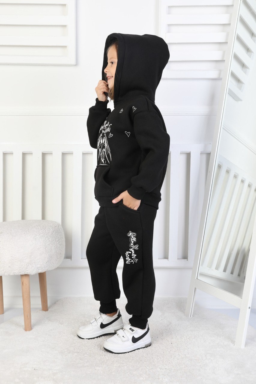 · Üç İplik Şardonlu Baskılı Kapüşonlu Kız Çocuk Takım, soğuk havalarda maksimum sıcaklık sunar;
