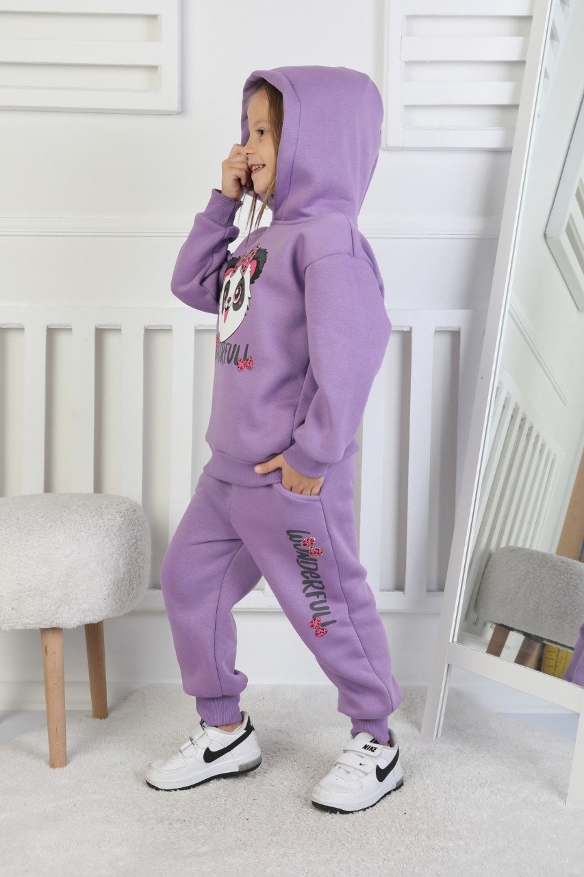 · Üç İplik Şardonlu Baskılı Kapüşonlu Kız Çocuk Takım, kış ve serin havalar için idealdir;