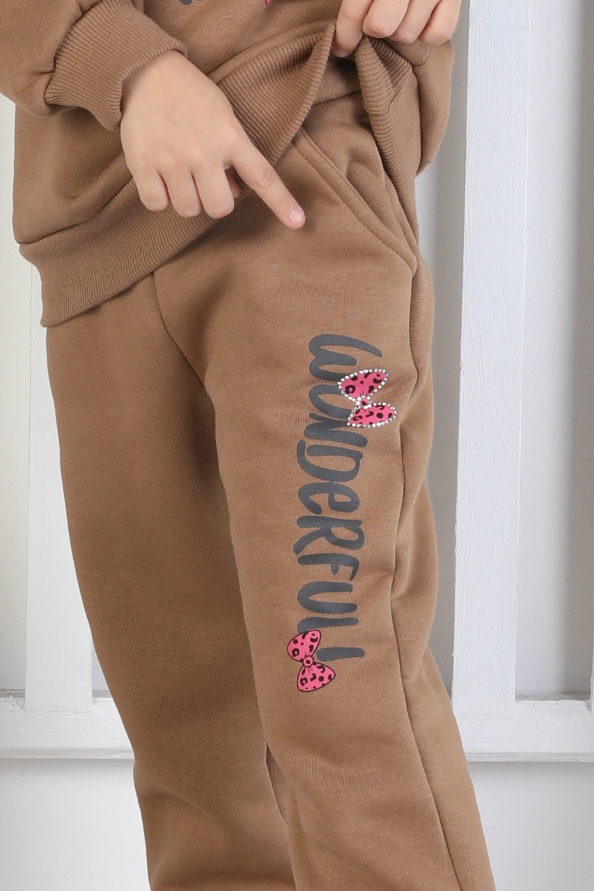 Üç İplik Şardonlu Baskılı Kapüşonlu Kız Çocuk Takım
