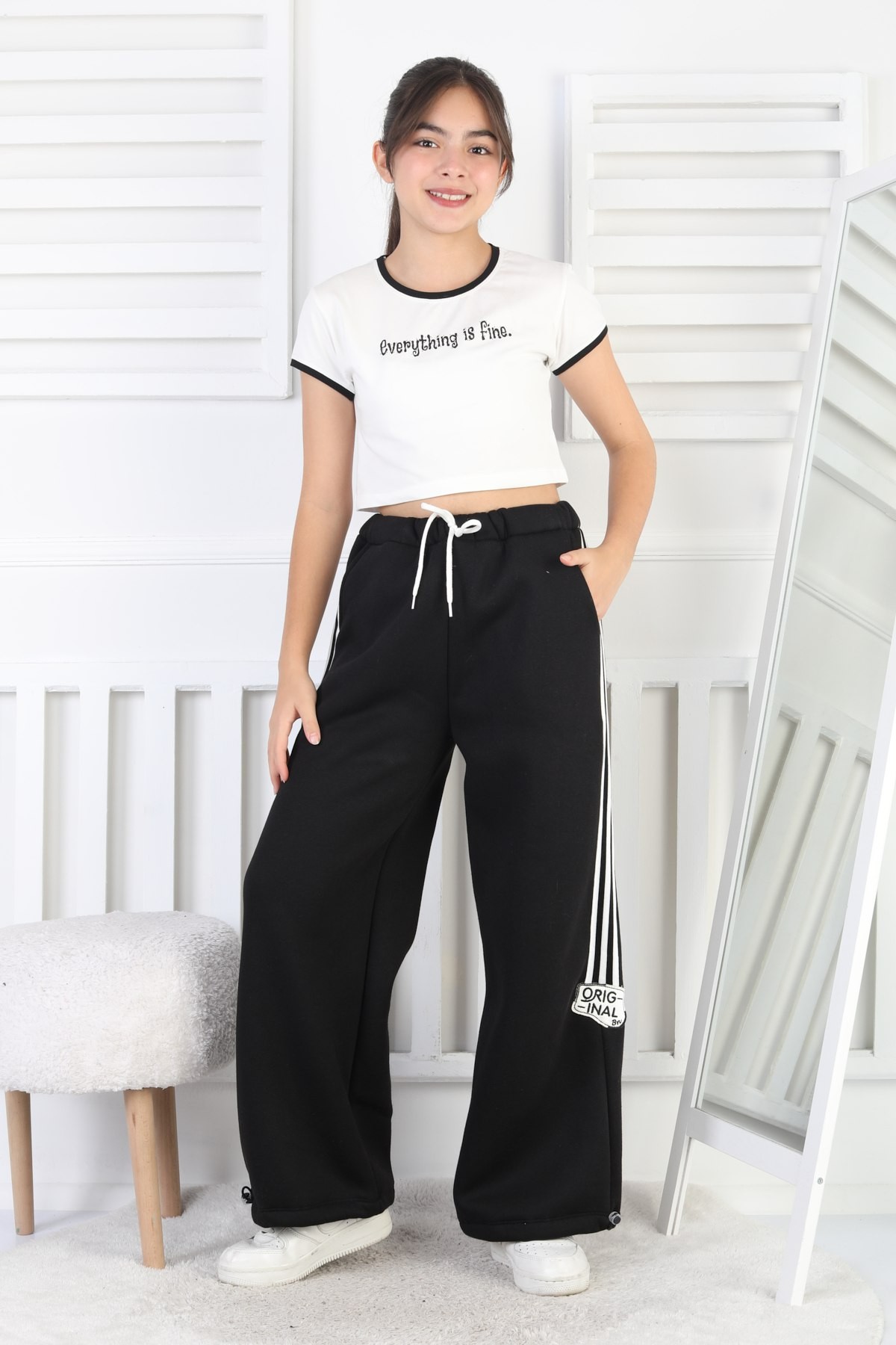 · Üç İplik Şardonlu Çizgili Bol Paça Kız Çocuk Eşofman Altı, soğuk ve serin havalar için idealdir;