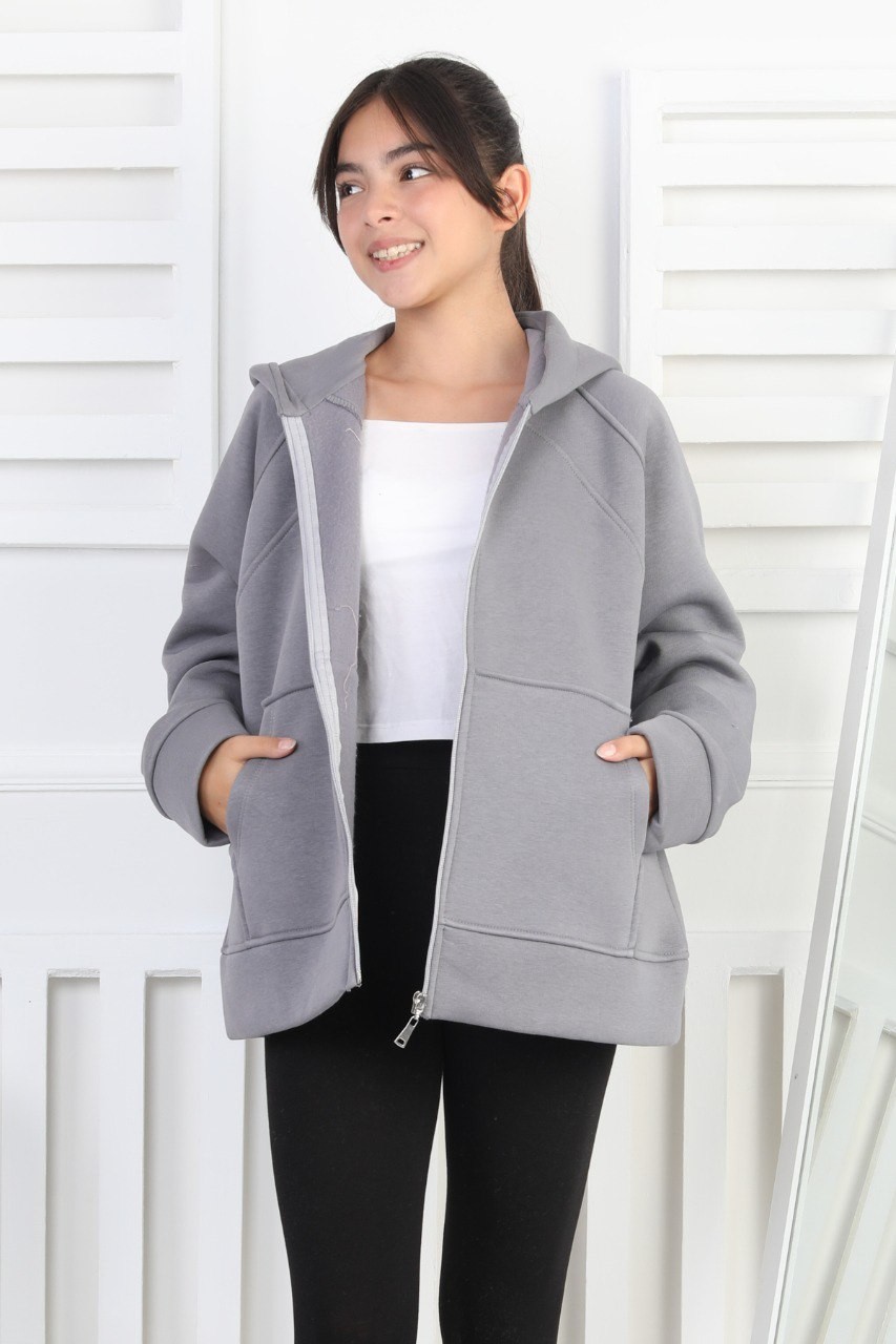 Üç İplik Şardonlu Kapşonlu Kız Çocuk Sweatshirt