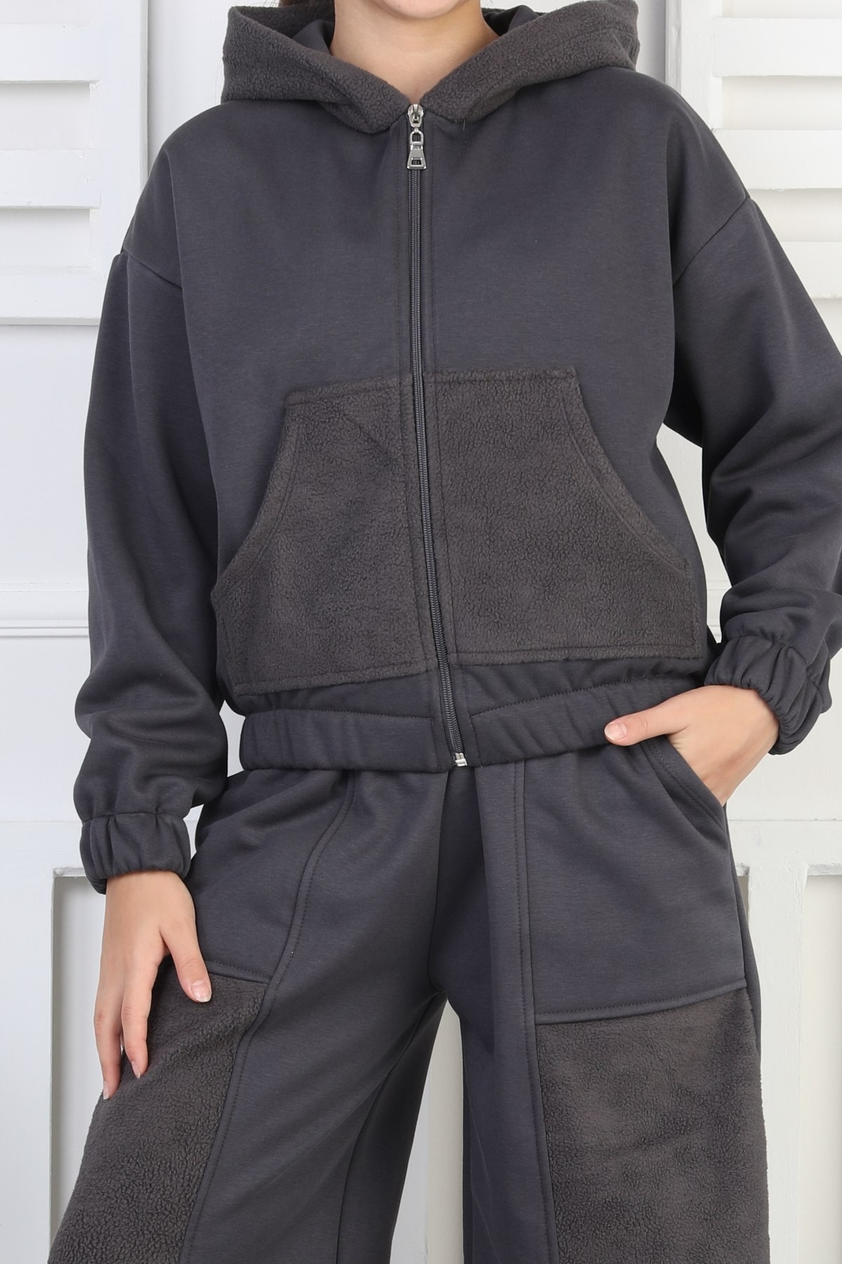 · Şardonlu üç iplik kumaşı ekstra sıcaklık ve yumuşaklık sunar;