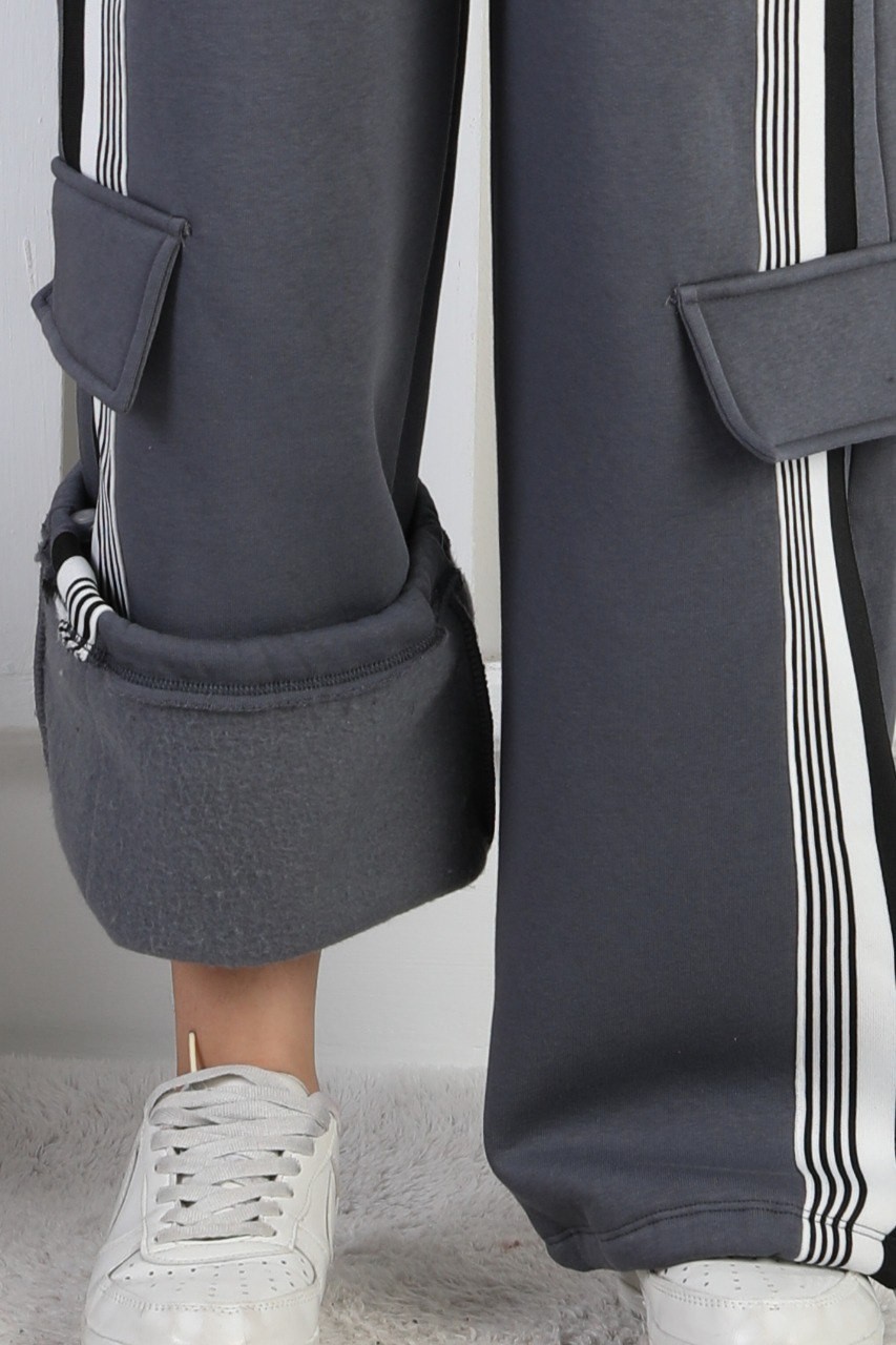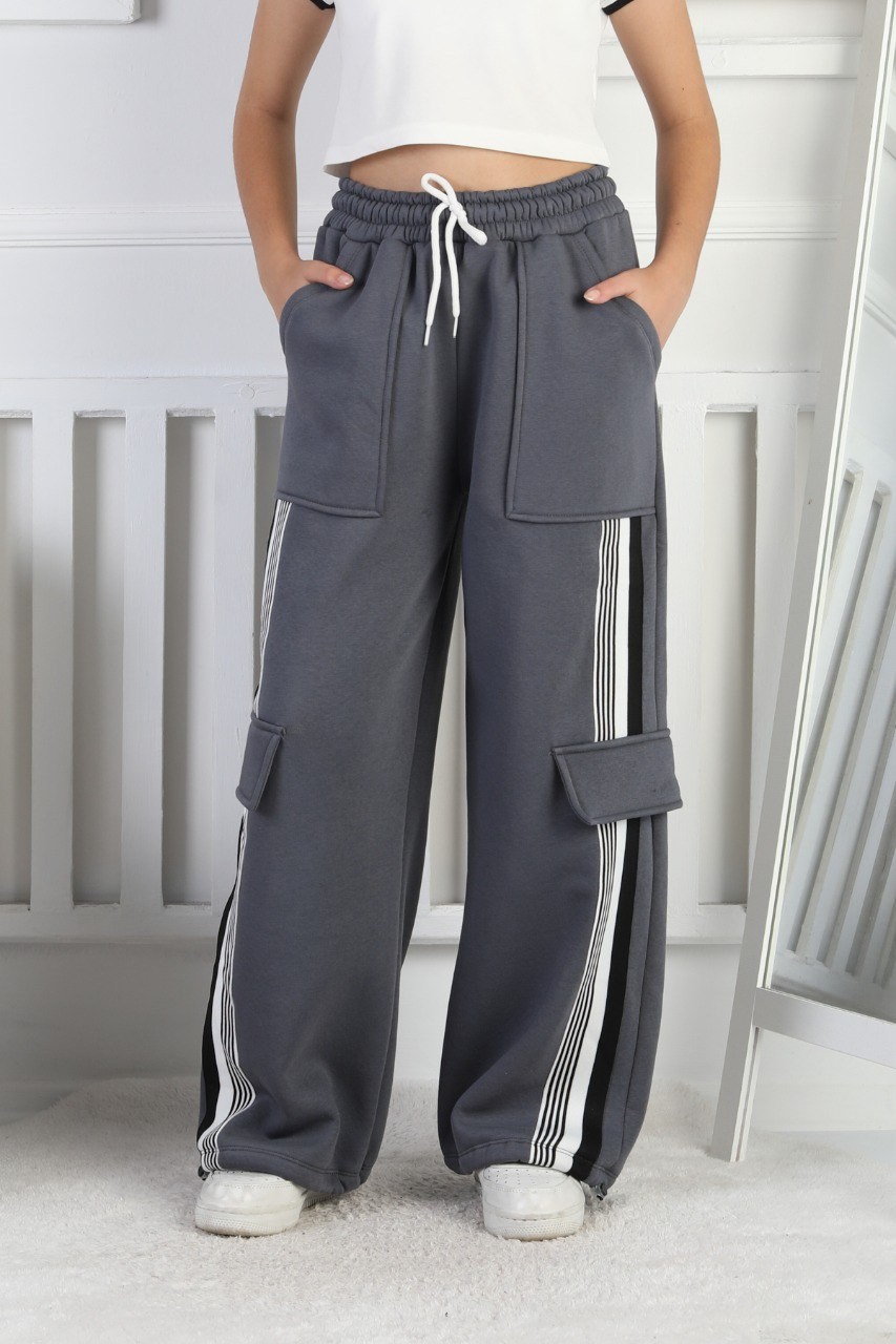 · Üç İplik Şardonlu Kargo Cep Detaylı Bol Paça Kız Çocuk Eşofman Altı, soğuk havalar için idealdir;