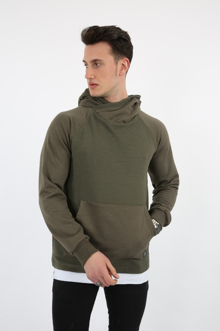 Üç İplik Şardonlu Kumaş Kapşonlu Kanguru Cepli Alttan Çıkmalı Erkek Günlük Sweatshirt