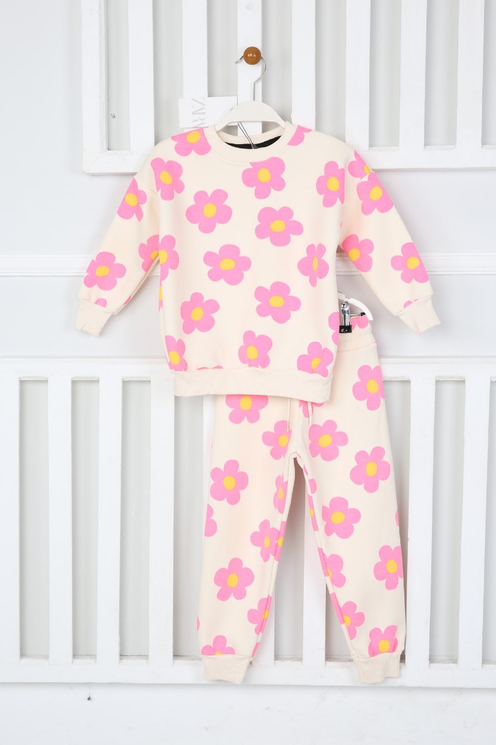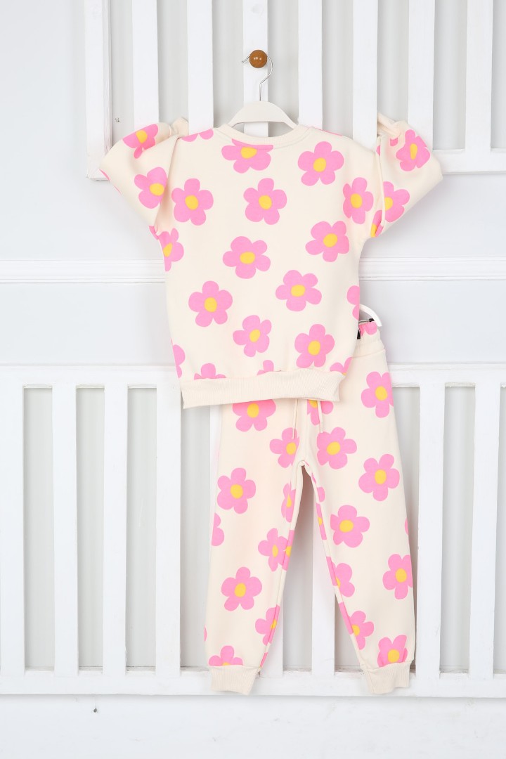 Üç İplik Şardonlu Papatya Baskılı Kız Çocuk Günlük Takım