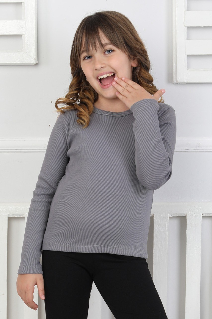 Uzun Kollu Kız Çocuk Füme Body