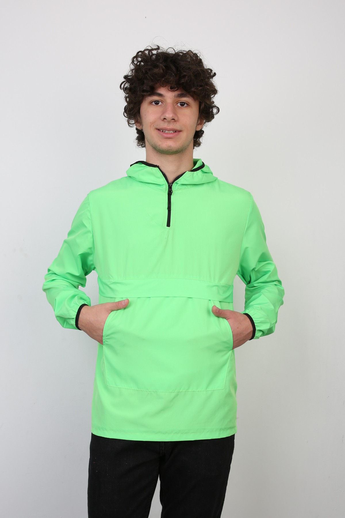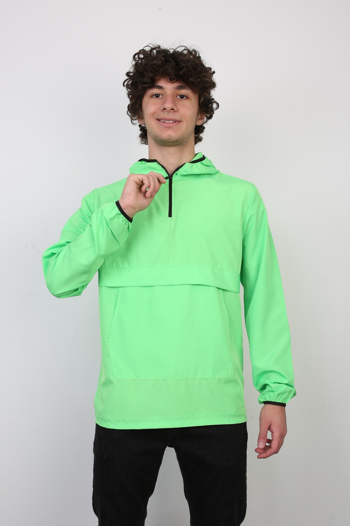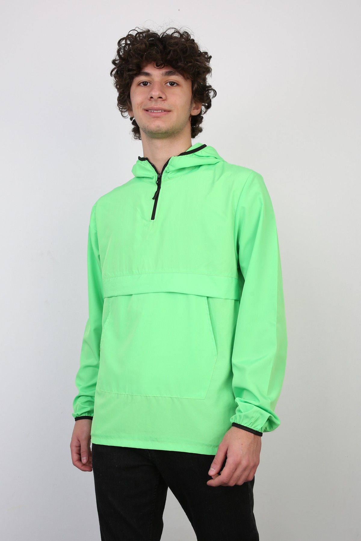 Yarım Fermuarlı Kapüşonlu İnce Erkek Spor Günlük Mevsimlik Mont