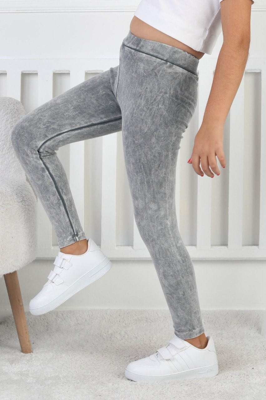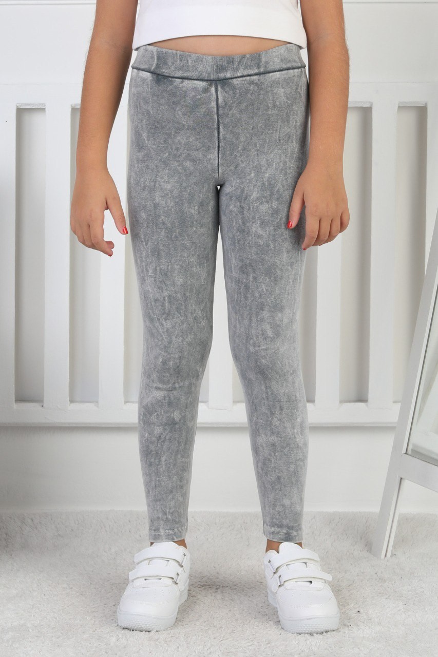 Yıkamalı Şardonlu Kız Çocuk Gri Tayt